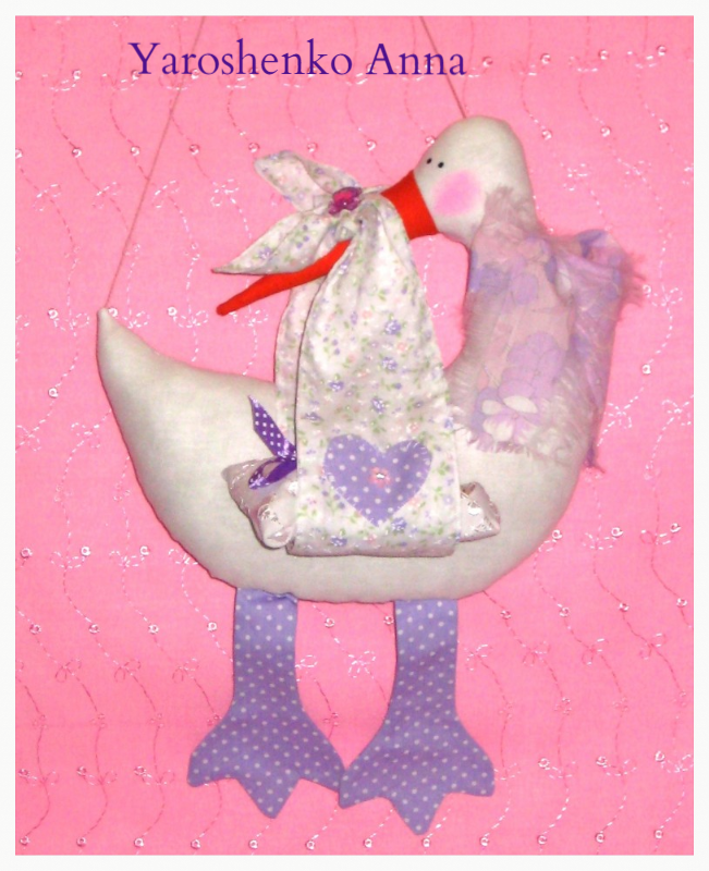 Аист с малышом-добрая весть в ваш дом, оригинальный и красивый подарок как будущим родителям, так и молодоженам и тем, кто думает о пополнении семьи)) Пошит из натуральной ткани, наполнитель (антиаллергенный) холлофайбер, очень мягенький! Рост 36 см., авторская работа-другого такого же вы не встретите нигде. Также пошив под заказ с учетом ваших пожеланий-цветовая гамма, размер. дизайн. тел. 0971041473 или 0950681126 Анна