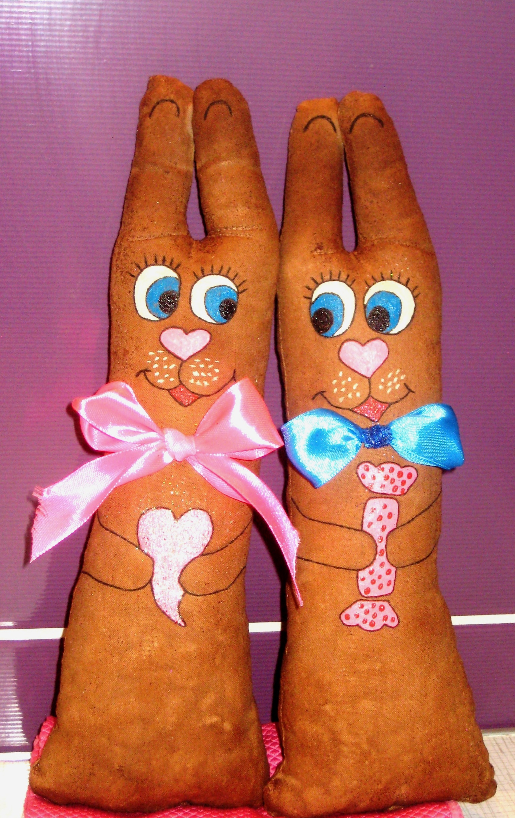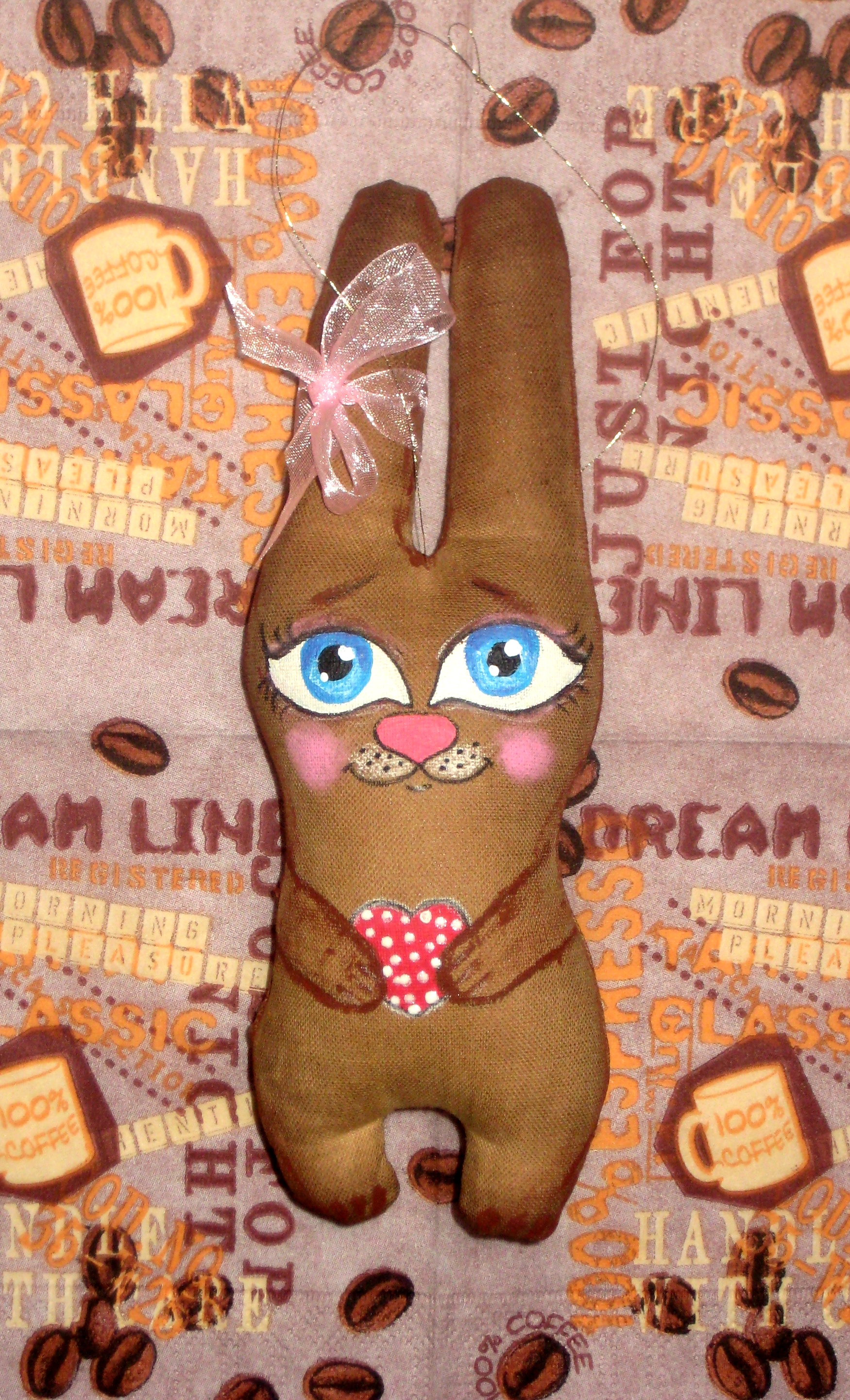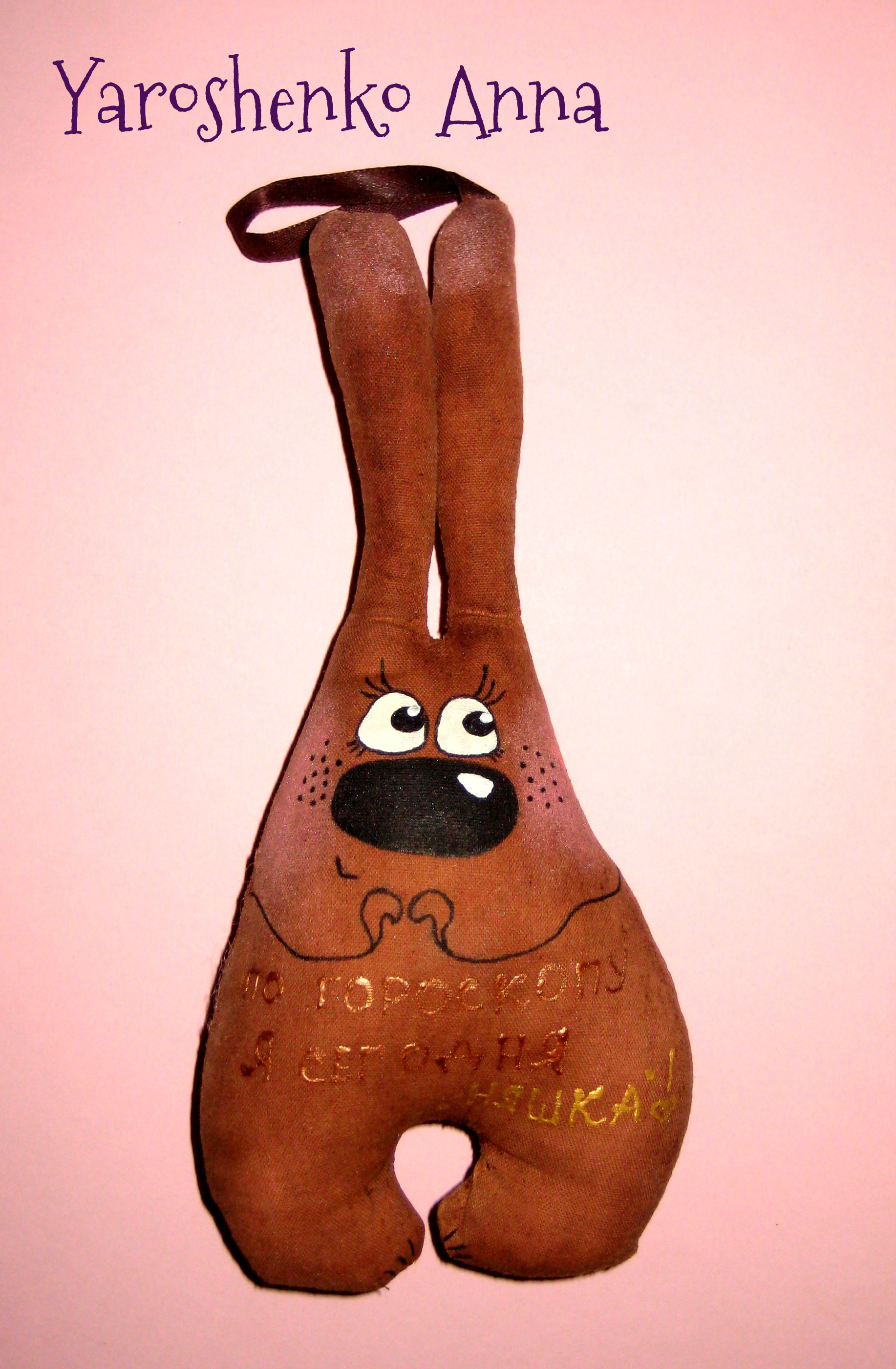 Зайки Позитивные ( :)) )пошиты из натуральной ткани, тонированы кофе, корицей и ванилью, расписаны вручную акриловыми красками, снабжены петельками для подвешивания. 14 февраля такой подарок будет прекрасным презентом для любимого человека или, кому-то, возможно, поможет намекнуть о своих чувствах))) Возможно изготовление на заказ и с другими рисунками, надписями. Цена указана за 1 зайку, при заказе от 5 игрушек- Скидки!