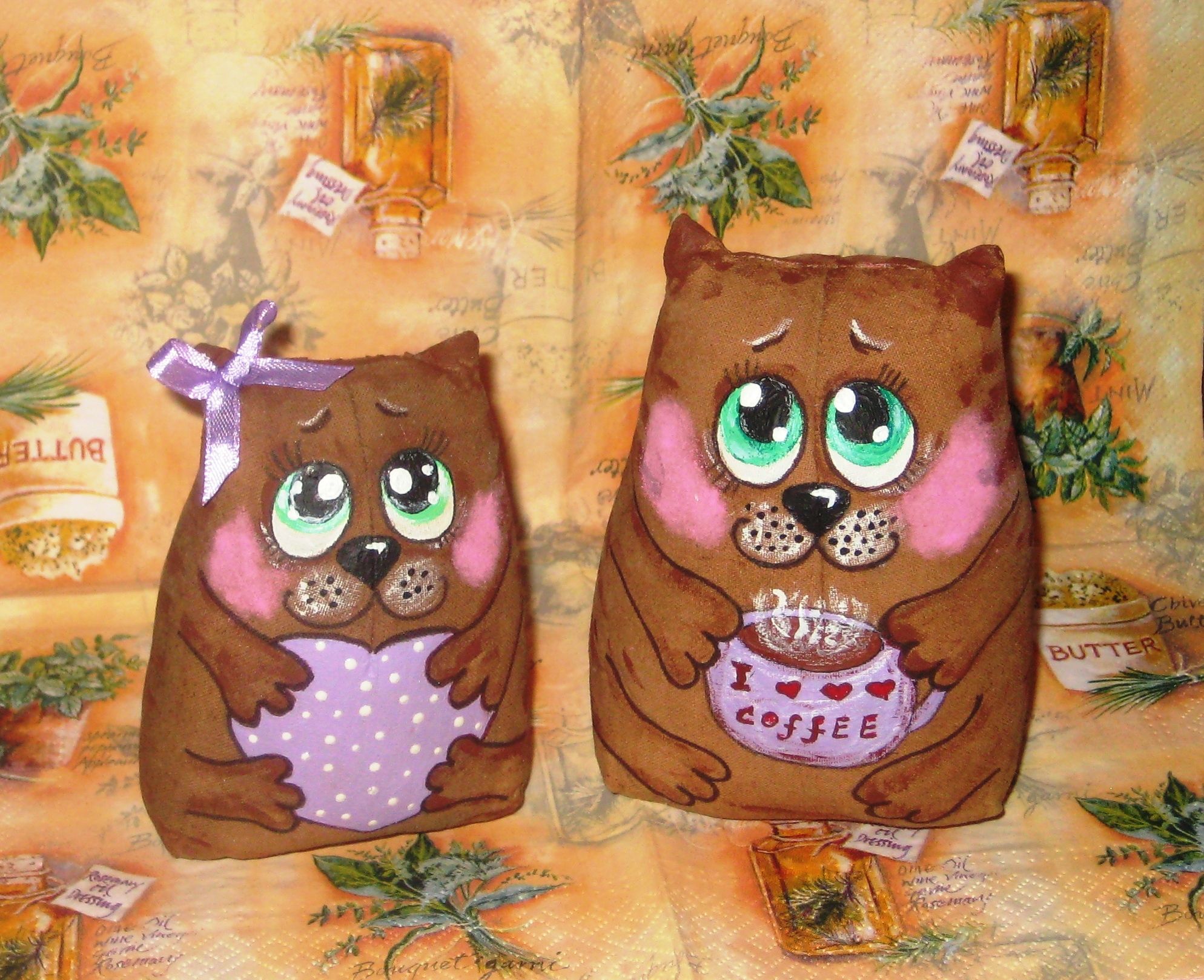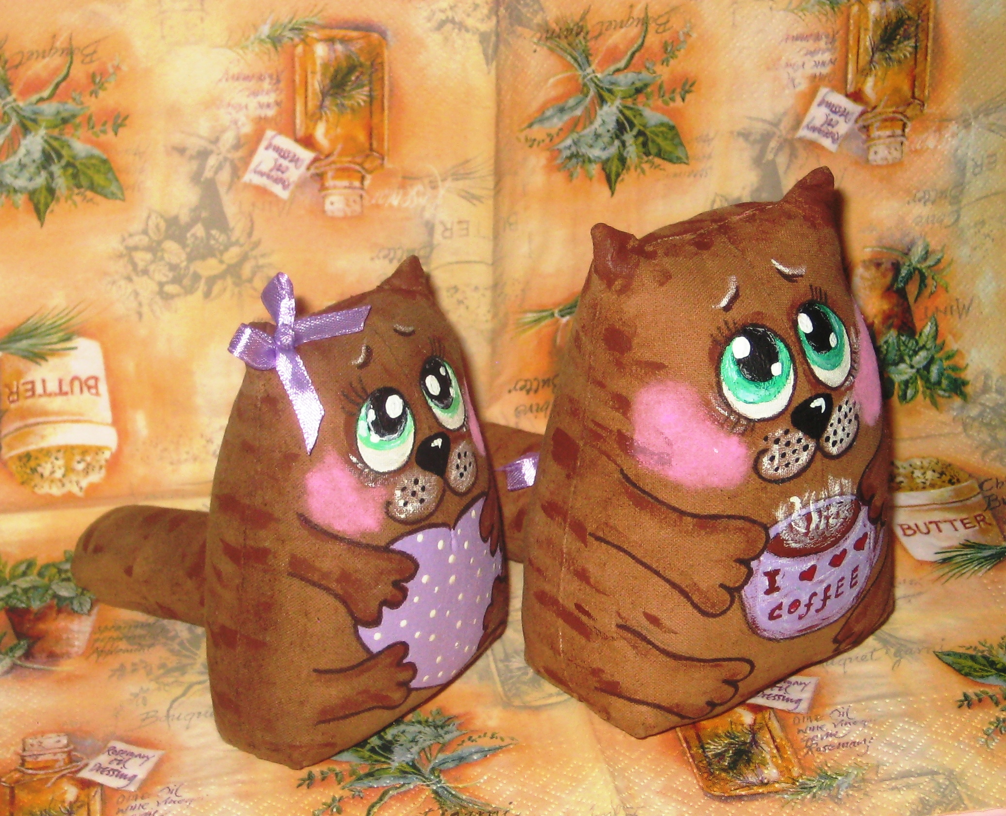 Ароматные влюбленные котики ручной работы порадуют вас и ваших близких!! Игрушки эксклюзивные, и выполнены в единственном экземпляре, пошиты из натуральной ткани, тонированы кофе, корицей и ванилью) Размер около 15 см., внутри сердечка можно написать ваши имена при желании. Аромат сохраняется долгие годы, уход-сухая чистка. Экологически Безопасные!!