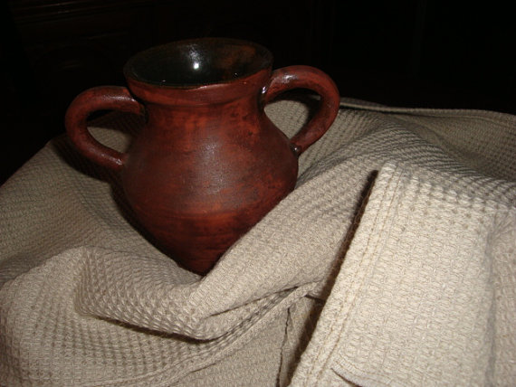 Beautiful 100 % natural linen towel with lace for Your bathroom, for beach or kitchen.