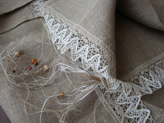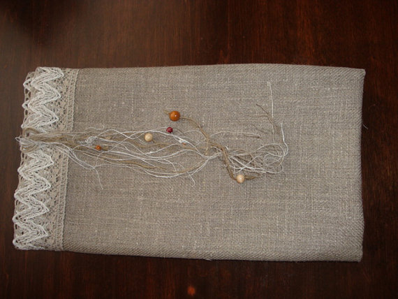 Beautiful 100 % natural linen towel with lace for Your bathroom, for beach or kitchen.