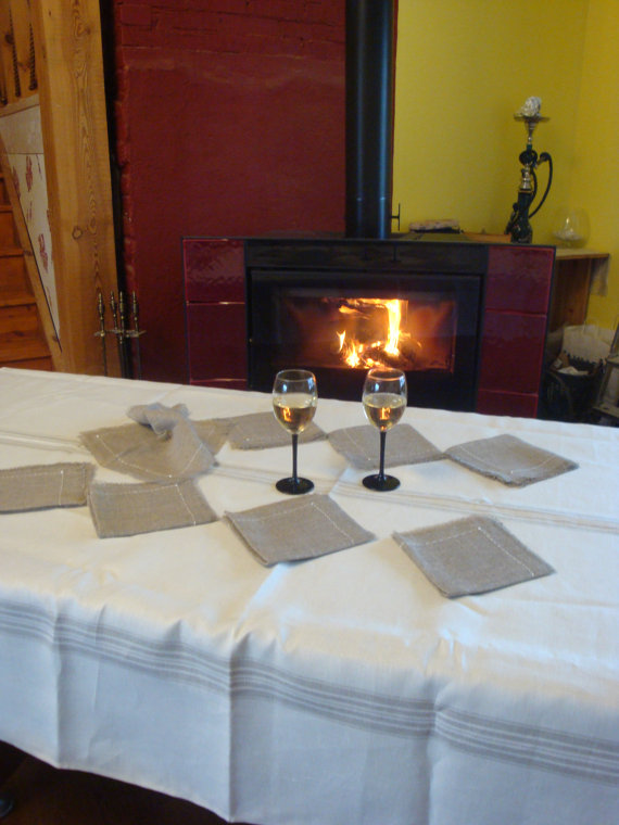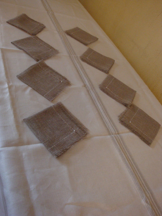 In addition, you can buy 8 elegant serviettes Natural gray with white embroidered linen thread and white pearls corners. Looks like watching and order in my store!