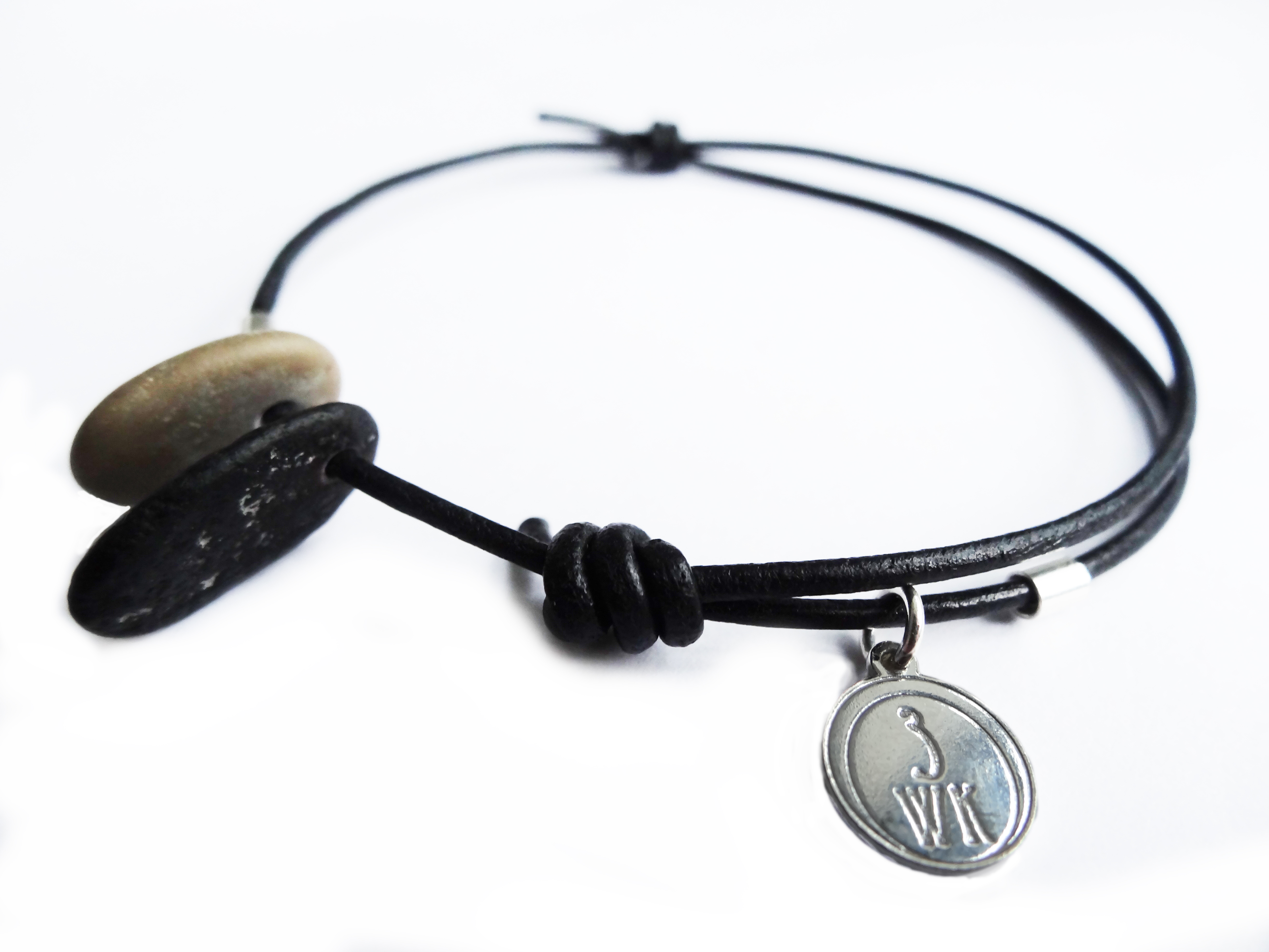 Handmade sterling silver and leather bracelets with Baltic Sea stones, collected at Vidzemes’ sea coast line in Latvia. Stone size 1.5 – 2.0 cm, black or grey color stone. Each stone is different and unique. Adjustable bracelet on sliding knots. Packaging linen bag.