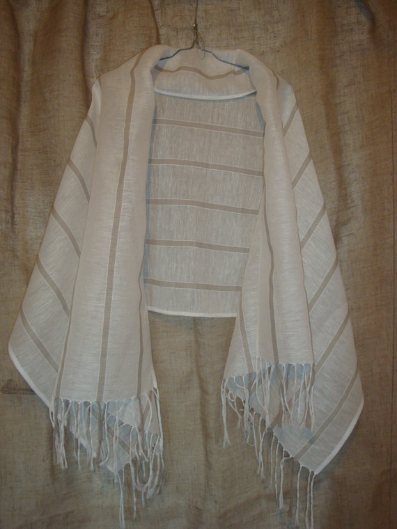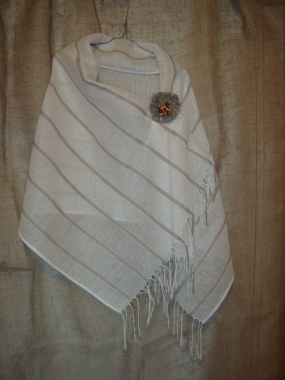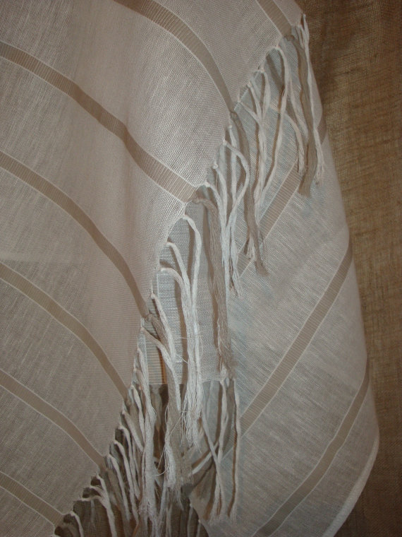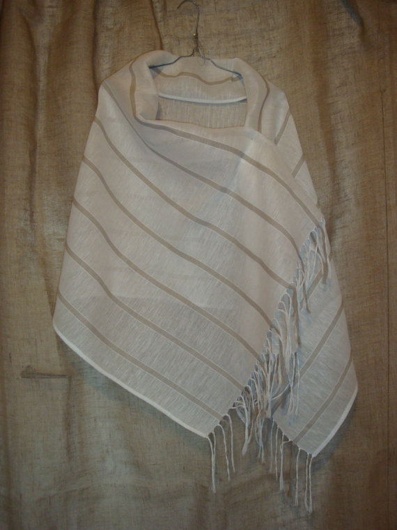 A beautiful scarf! Shawl. It is woven into denser stripes. Hands tied fringes long. It will highlight your feminine. It’s prom dress, the beach or businesslike clothing. It will protect from the wind and the sun.