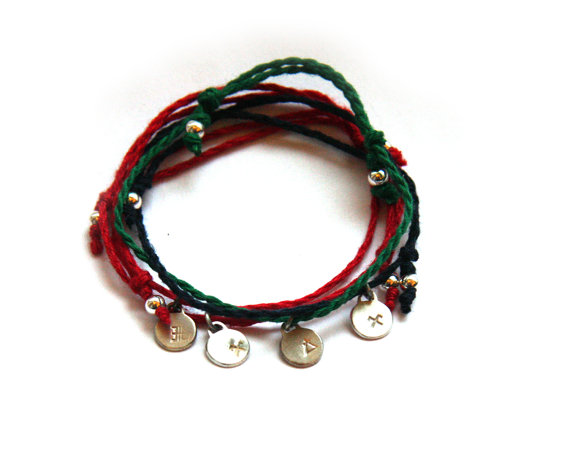 Alphabet Letter Jewelery- Hand Stamped Initial bracelet- handmade sterling silver 925 personalized pendant on leather cord