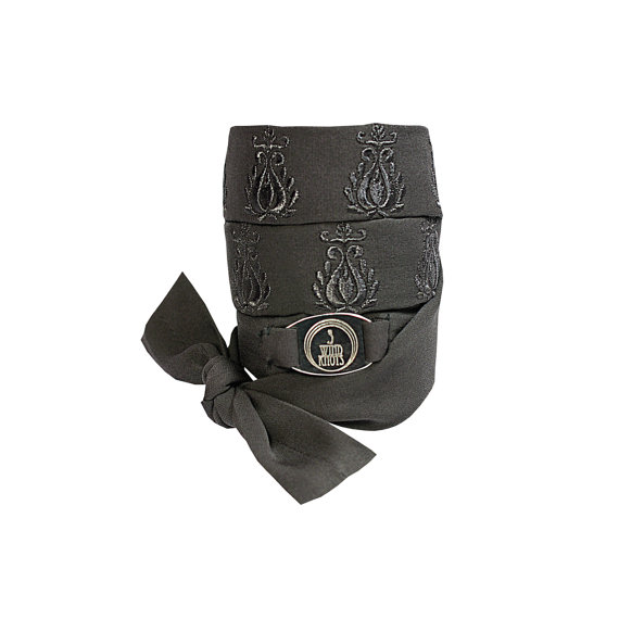 Art Nouveau FIRE- Silk wrap around bracelet with Art Nouveau embroidery- Grey with grey embroidery
