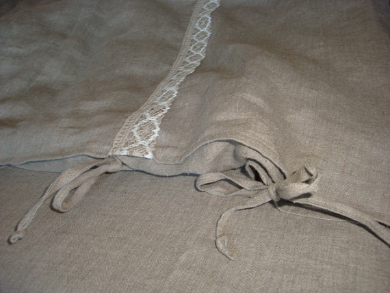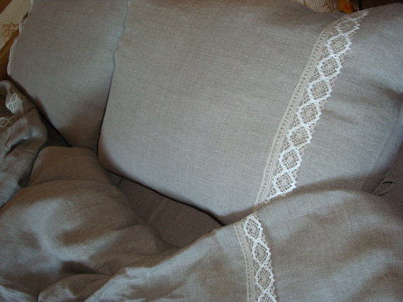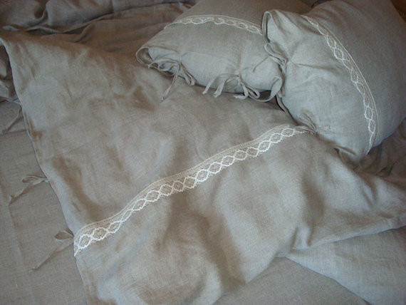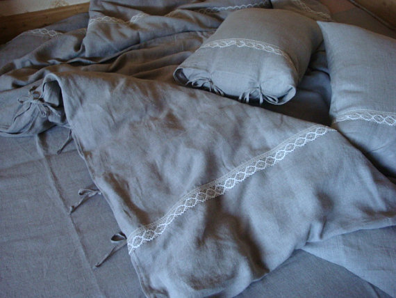 Linens sewn from 100 percent linen. Because of the cross-linked natural gray tkani.Tkan very soft – it resembles silk. Bed linen decorated with a unique theme crocheted lace.