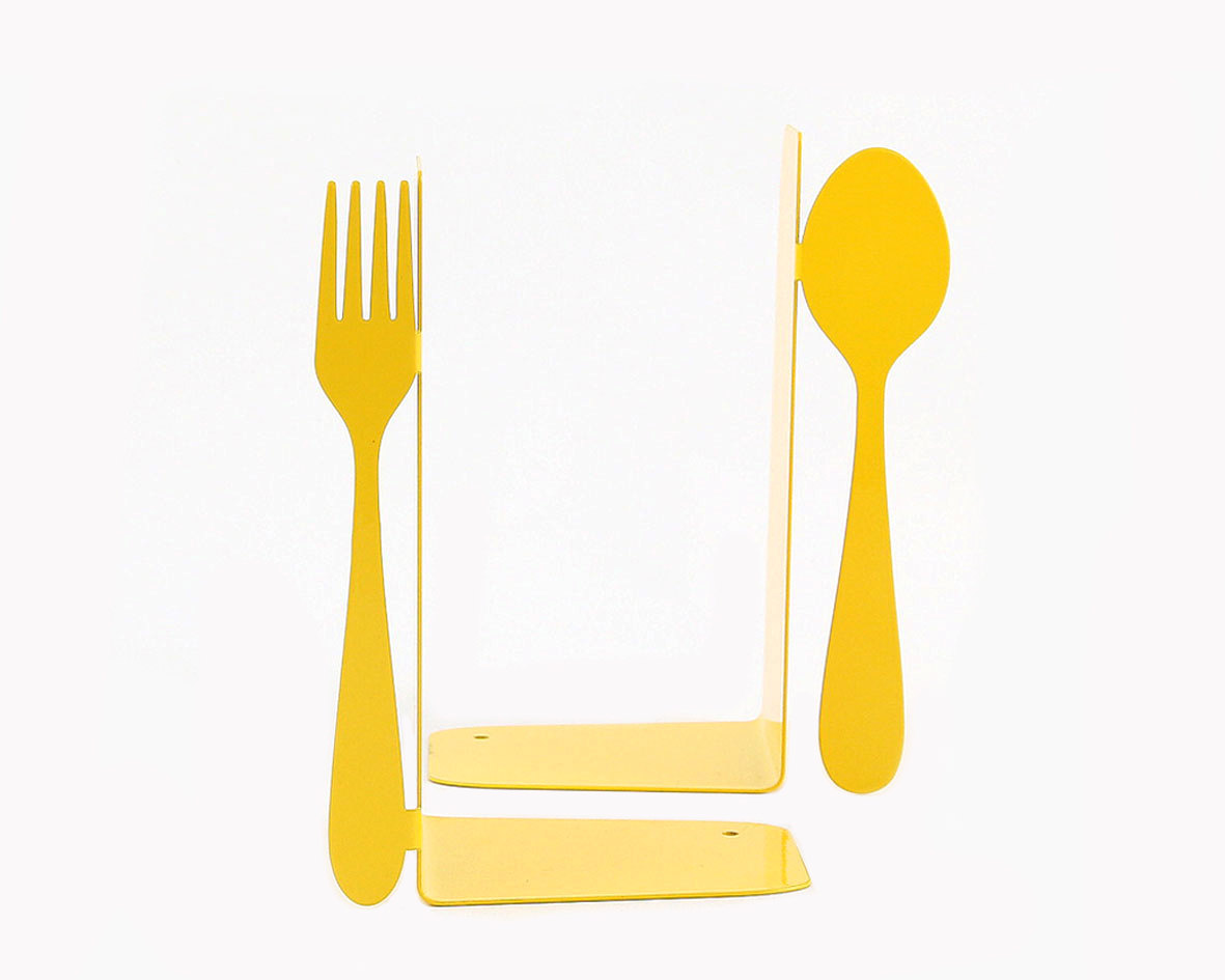 Minimalistic and useful bookends – Fork and spoon – will clearly mark what kinds of books are in between. Use them in the kitchen to hold a bunch of your favorite cookbooks.