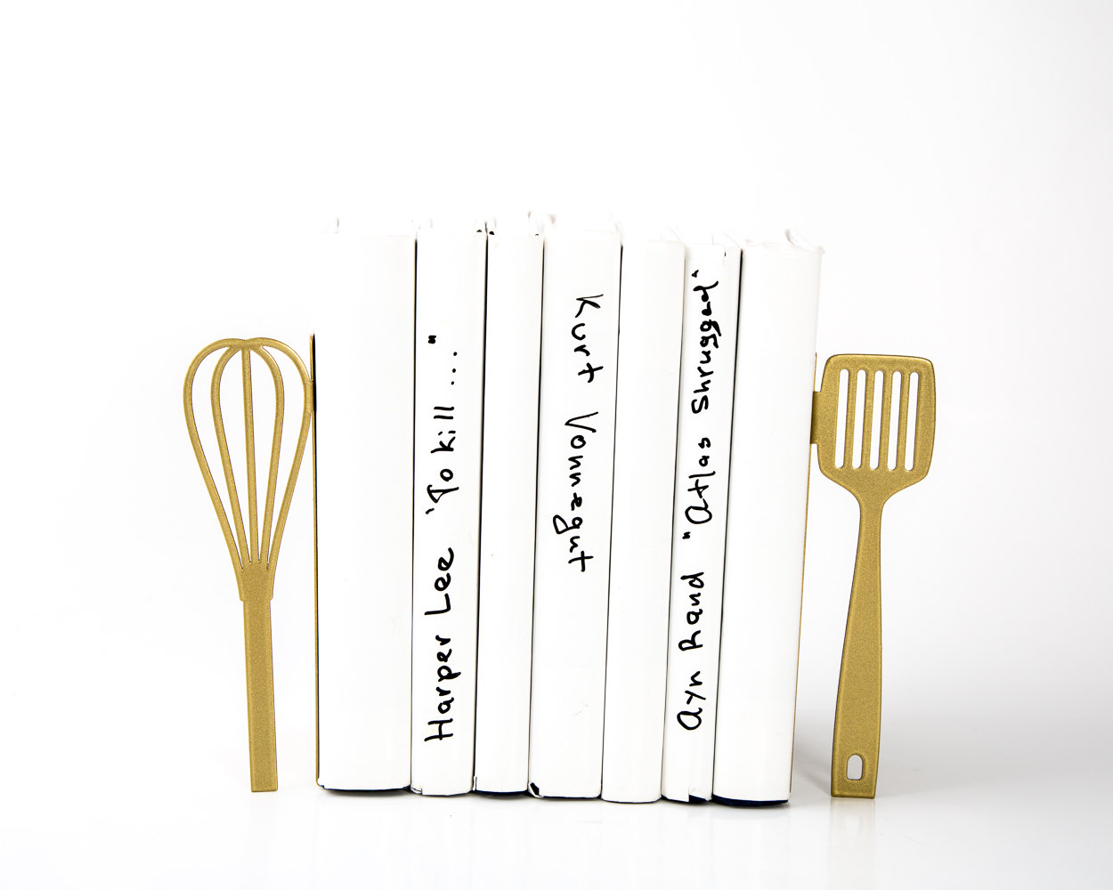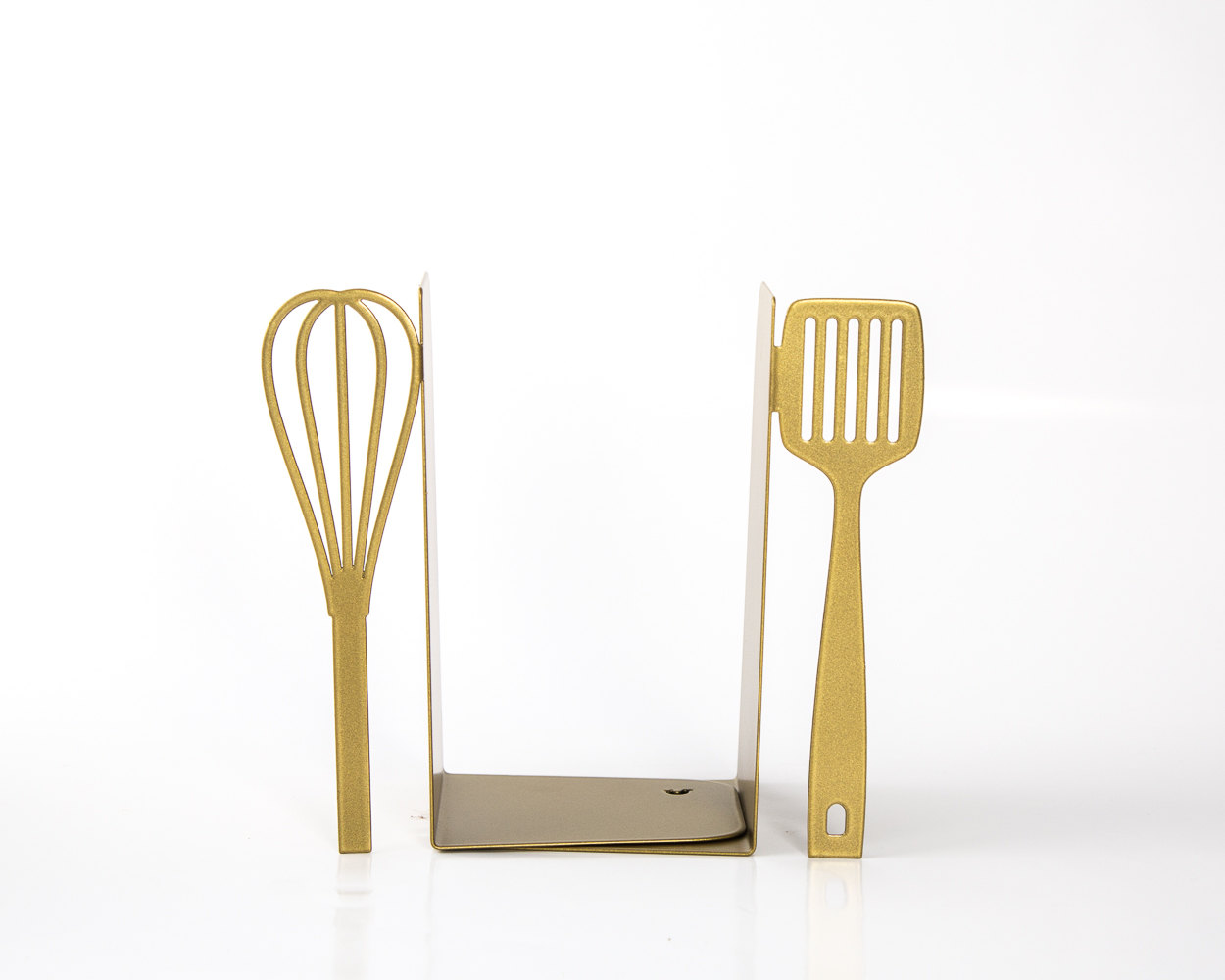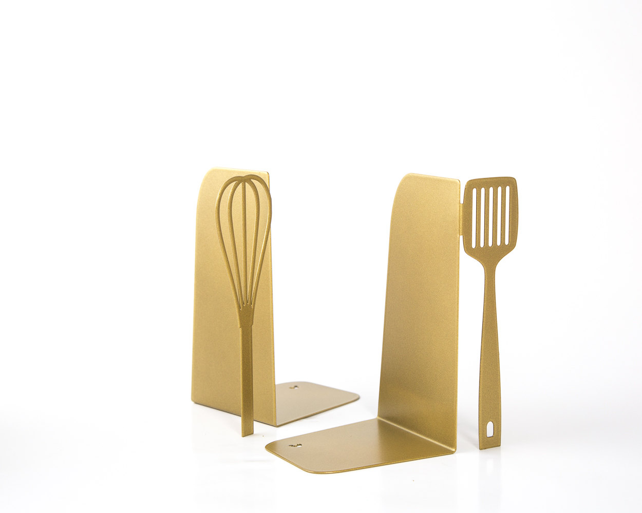 Minimalistic and useful bookends – Spatula and whisk – will clearly mark what kinds of books are in between. Use them in the kitchen to hold a bunch of your favorite cookbooks. Perfect decor to organise your kitchen library.