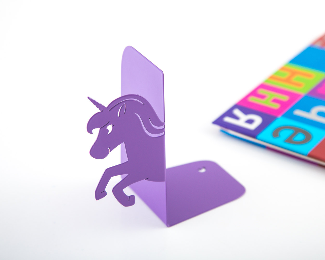 One of a kind contemporary style bookends for your child’s book selection. She can choose what she likes at the moment and display it on the shelf.