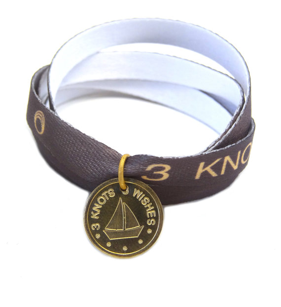 Be the first to review “Bronze Ship coin pendant on light brown meaningful satin wristband”