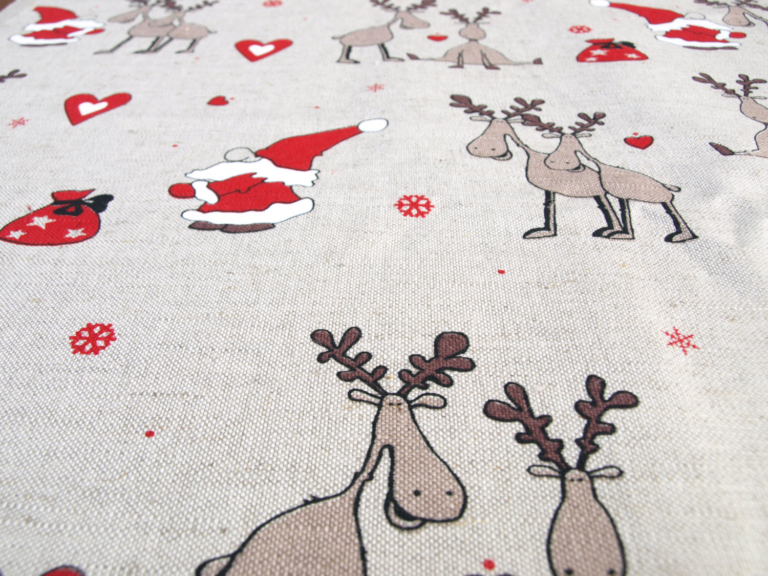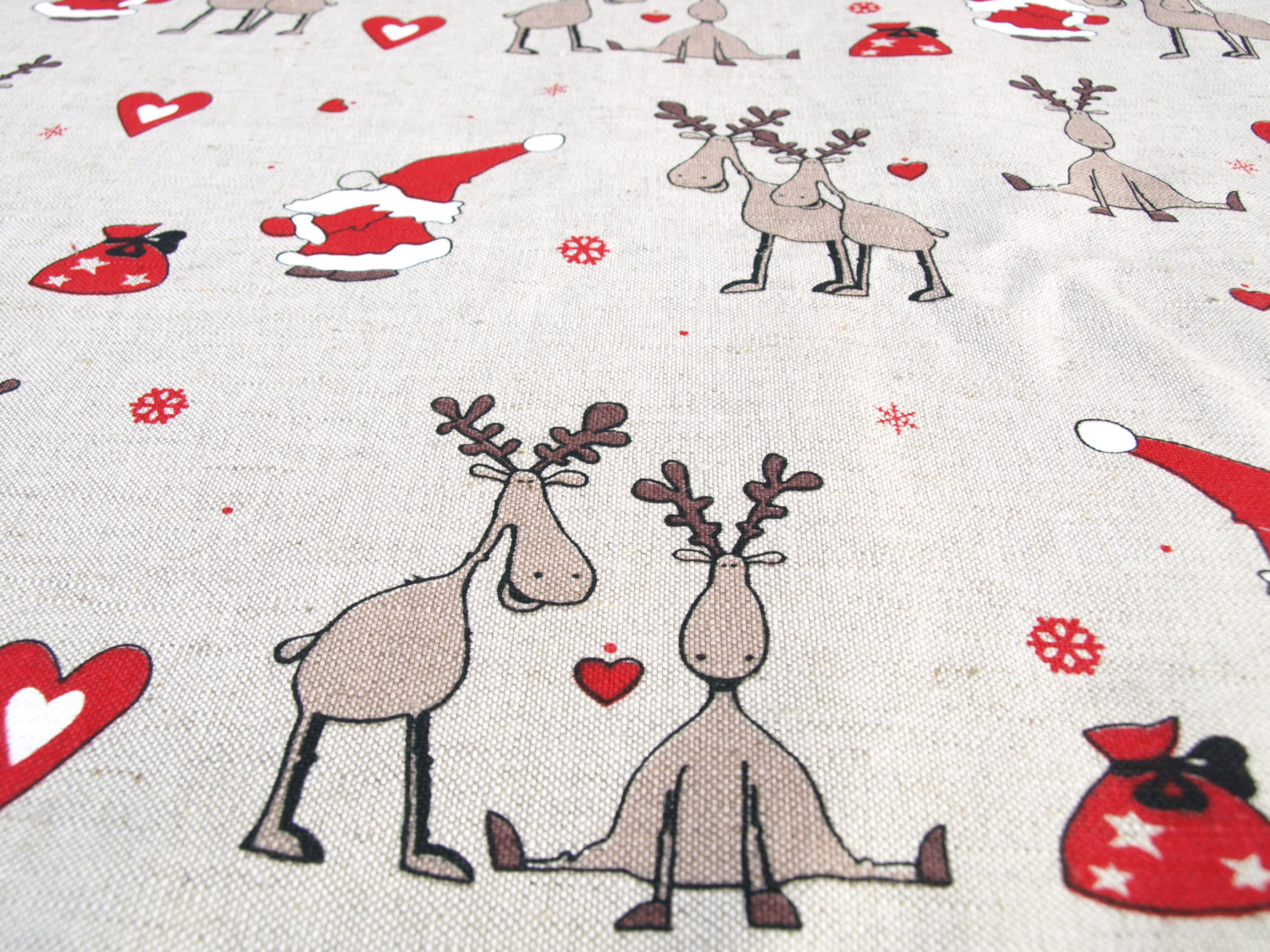 Christmas Linen tablecloth Rain deers Santa Claus Elf Tomten decor Natural Linen Eco Friendly, runner , towel , curtains available ,eco GIFT
