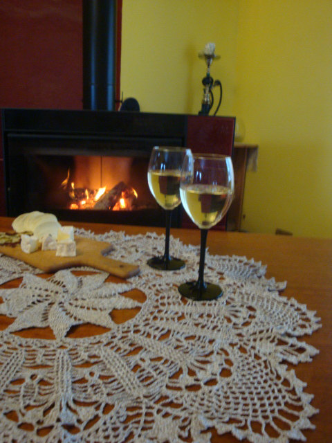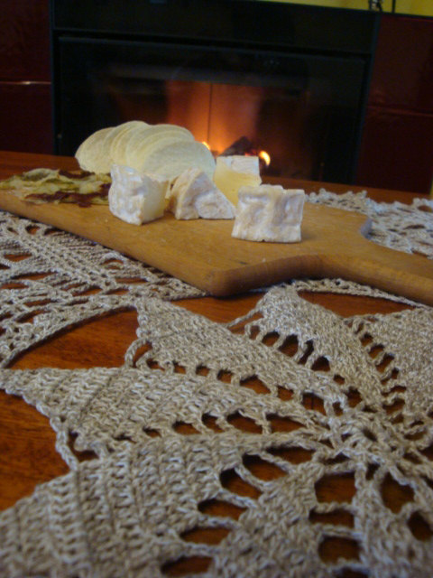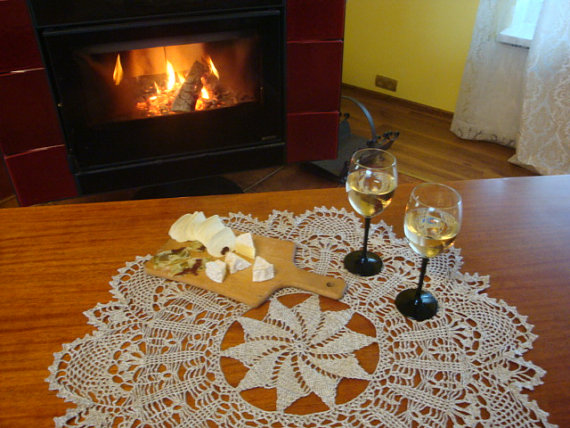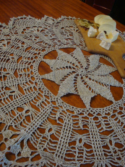 Crochet linen tablecloth.