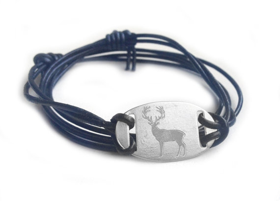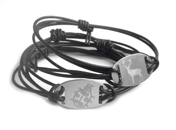 Deer bracelet- love symbol- engraved melchior pendant on leather cord