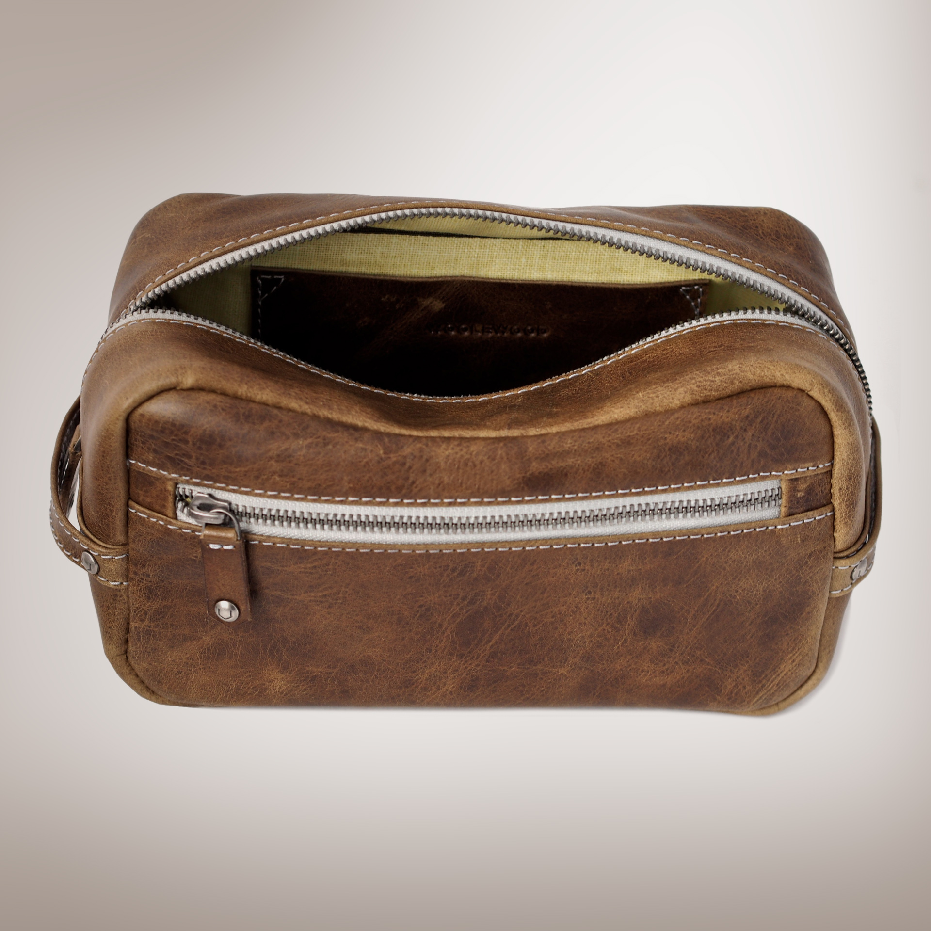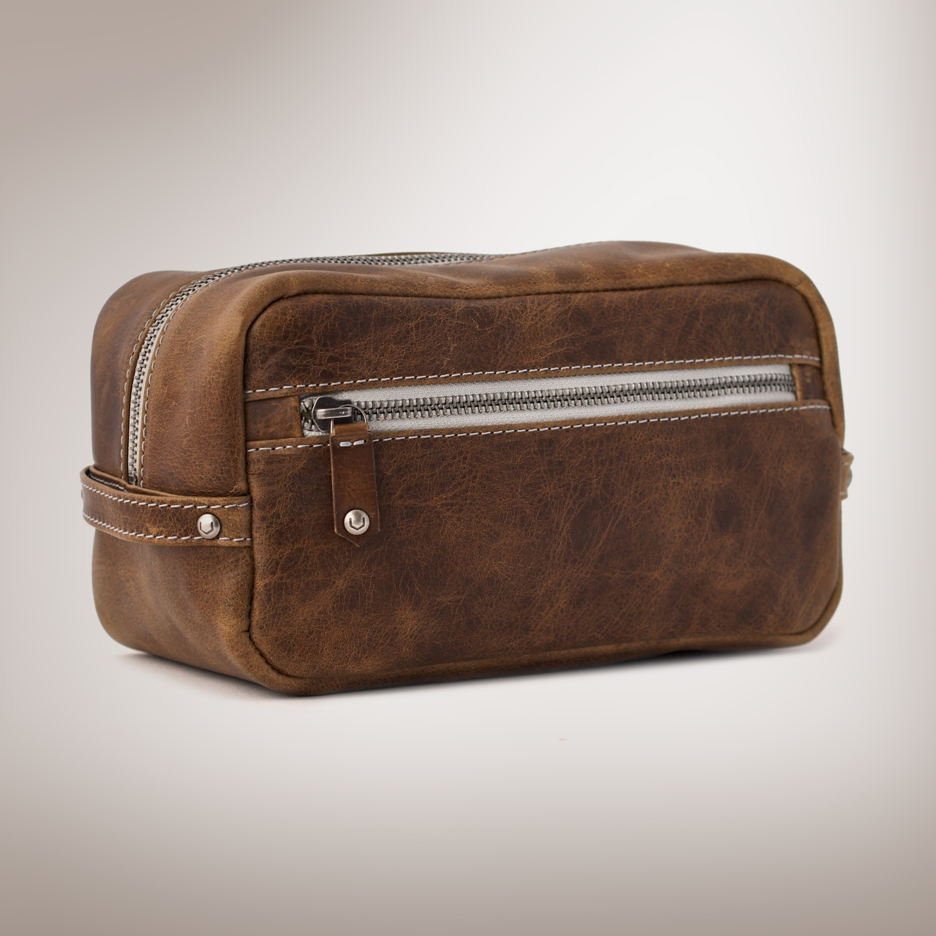 - Even the fastest packing for travel do not eliminate that you need essential things. And if you travel quite often and like comfort, then our Dopp Kit BOURBON TRAVEL will become indispensable for you. Its advantage is in the fact that it is quite roomy inside, has a zippered pocket on the outside and it can be securely locked. Especially those who love the aesthetics in everything will remember BOURBON TRAVEL for its beautiful implementation – matt Italian leather with aging effect and a variety of decorative elements.