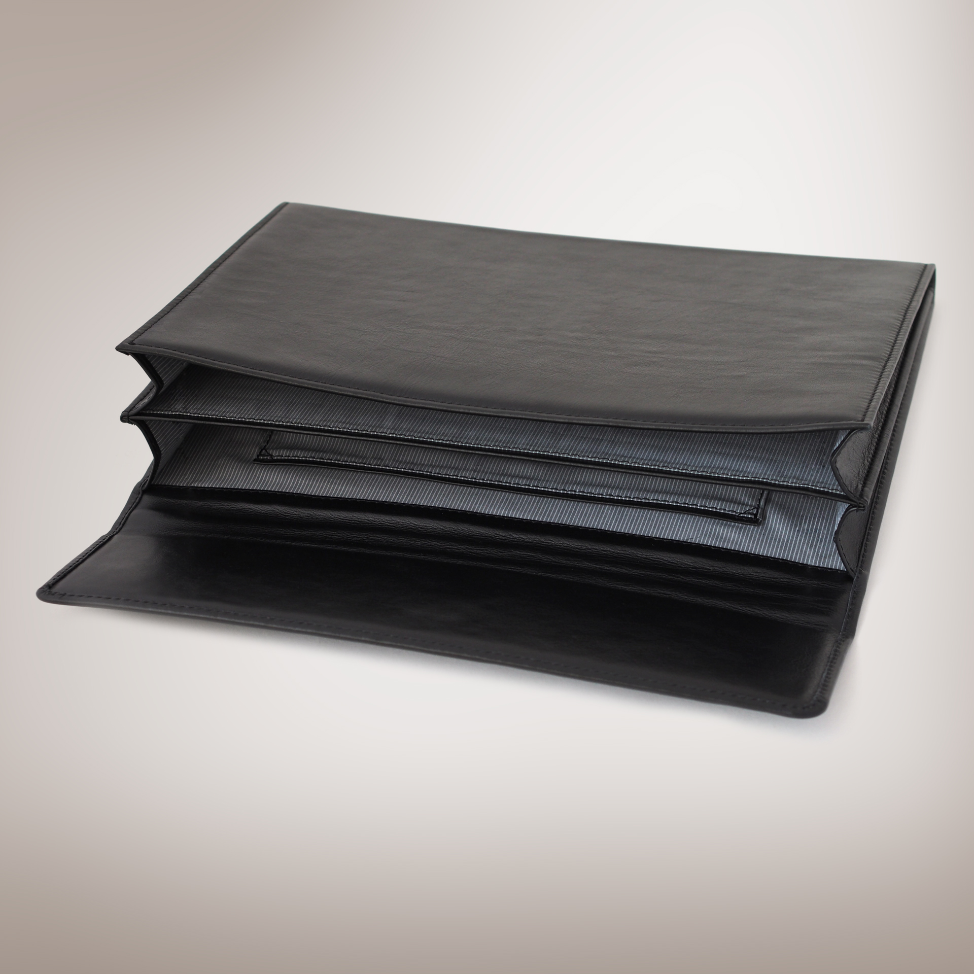 • Folder TORO for documents is not overloaded with unnecessary details exteriorly, as it is designed for the preservation of business documents. It is possible that besides the documents you will be carrying your tablet or cellphone in it. There is enough space for it and the cover flap with magnets closes the folder securely. Several items add ergonomics to the design: internal wide pockets, pockets for smaller papers and business cards and pen attachments.