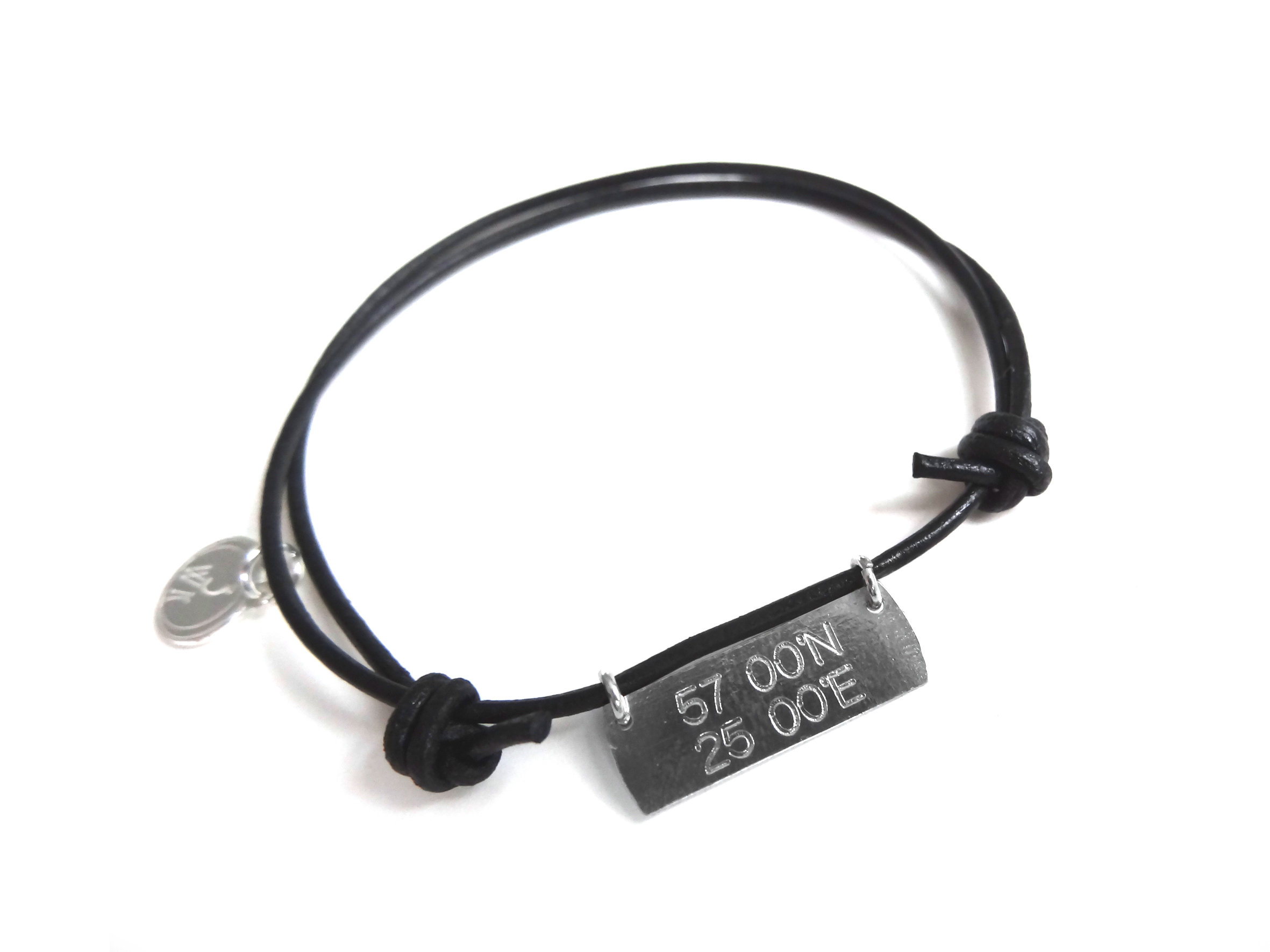 Be the first to review “Geographic coordinate bracelet- sterling silver 925, leather cord”