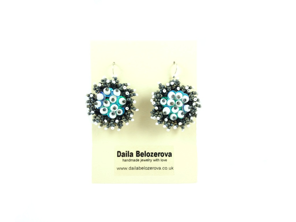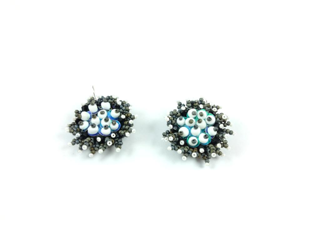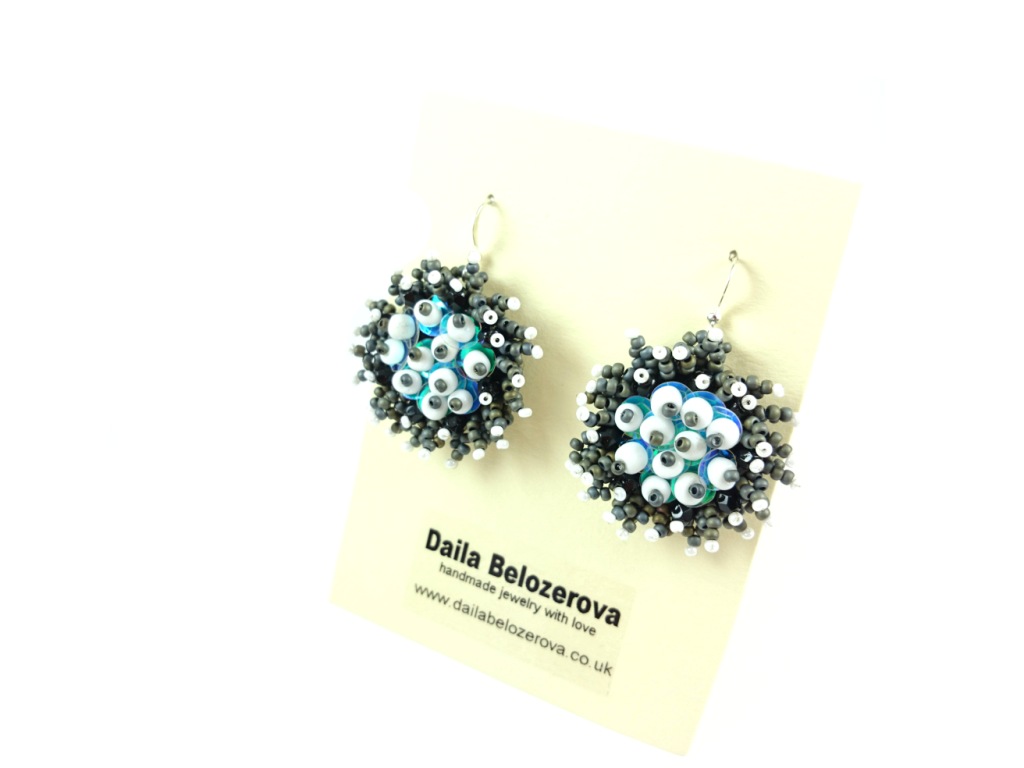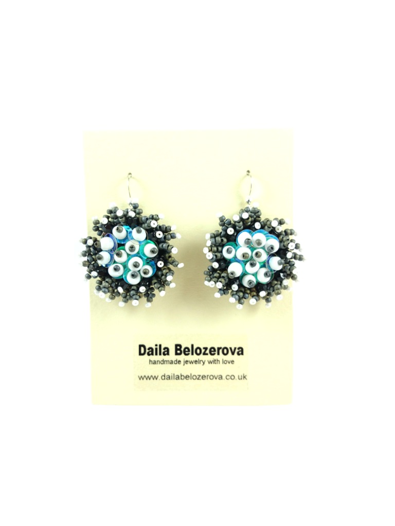 Be the first to review “Grey Round Earrings. Bead Embroidered Earrings, Jewelry in bead embroidery, Grey Handmade earrings.”