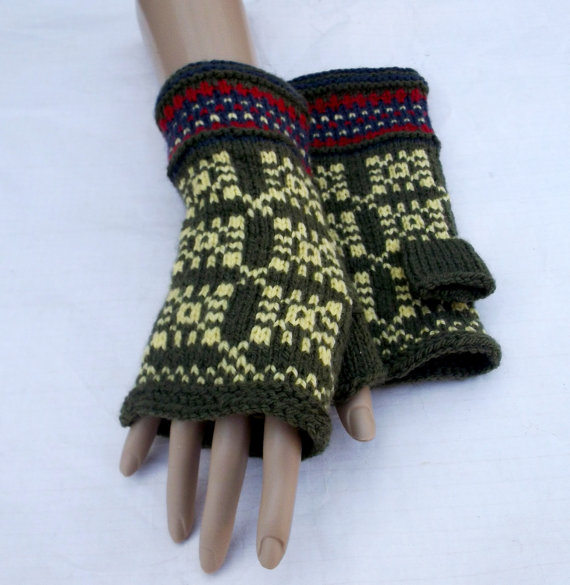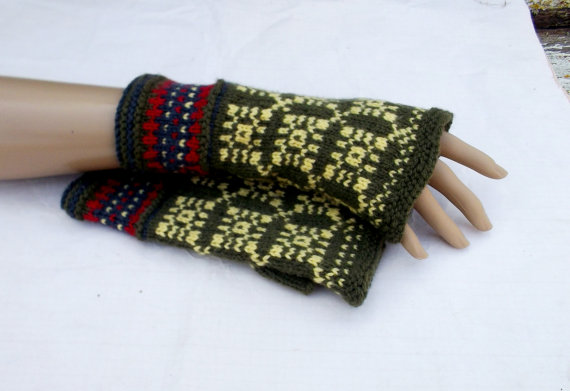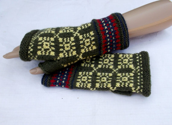 These latvian patternknit fingerless gloves are knitting from soft acrylic yarn.
