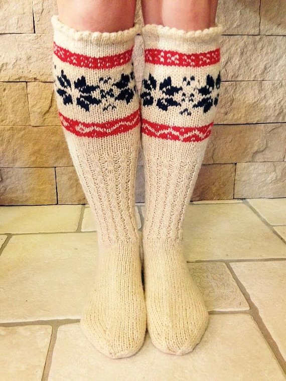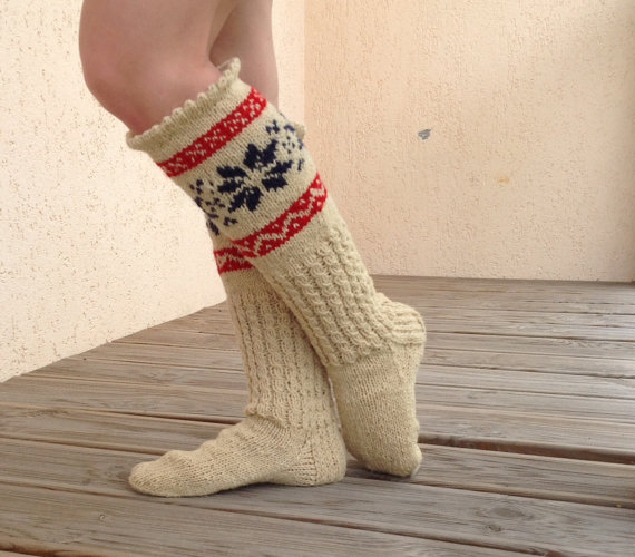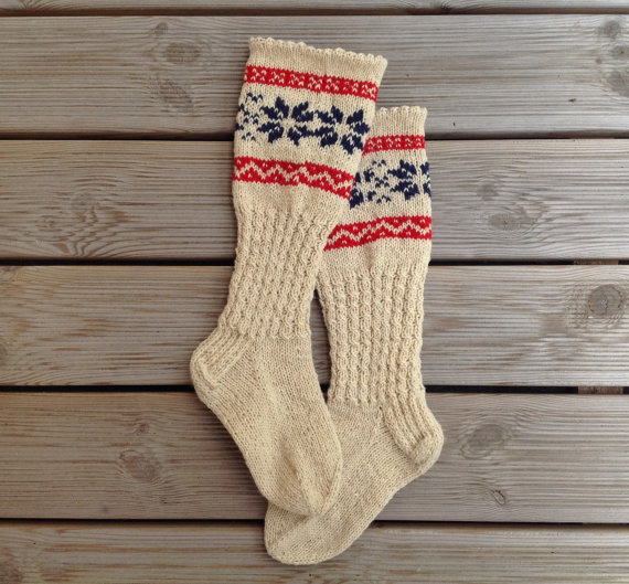 Handmade knitted long socks. From 100% Latvian wool. Size: 38/40 (European); 5-6,5 (U.K.); 7-8,5 (U.S.)