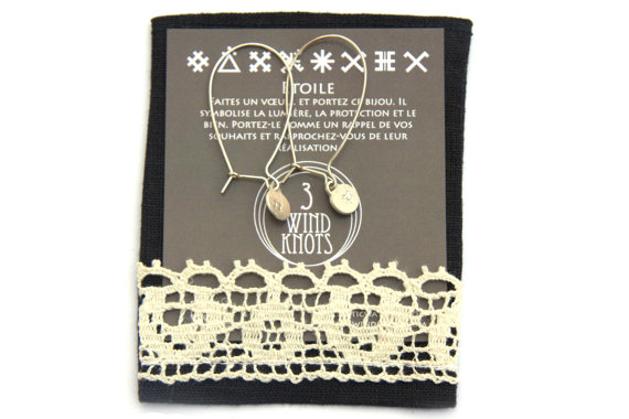 Be the first to review “Handstamped jewelry- pendant earrings- sterling silver 925 – 4,5cm long hoop- STAR sign – protection”