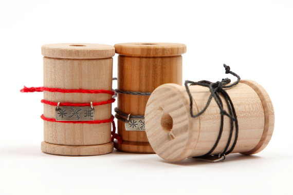 Wooden spool: height 5,5 cm, diameter 3,7 cm
