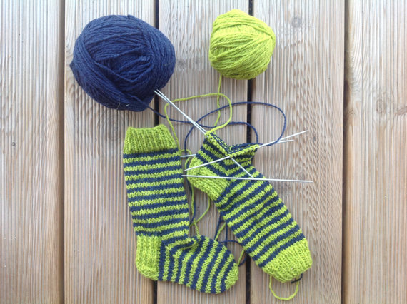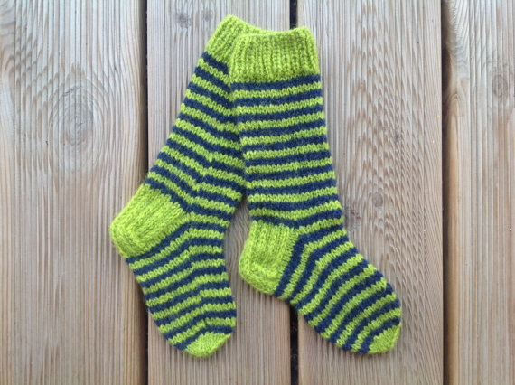 Nice handmade knitted striped socks. Socks are very soft, warm, cozy, natural and lovely. Just perfect for your children.