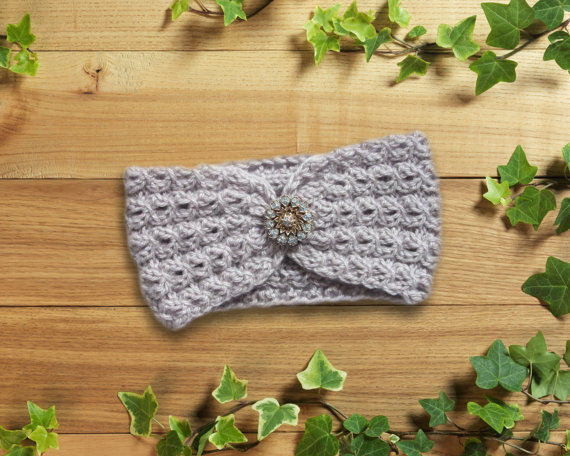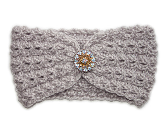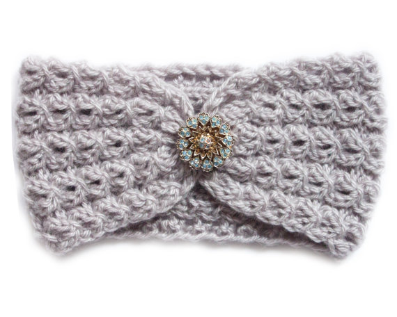 Great idea for a winter knit Headband handmade head, adorned with a large metal brooch with stones. Retro style. Fashion trends. Bandana. Warm ears. A perfect gift for women.