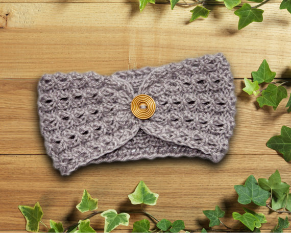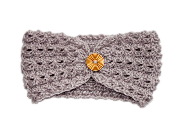 Great idea for a winter knit Headband handmade head, adorned with a large wooden buttons. Retro style.