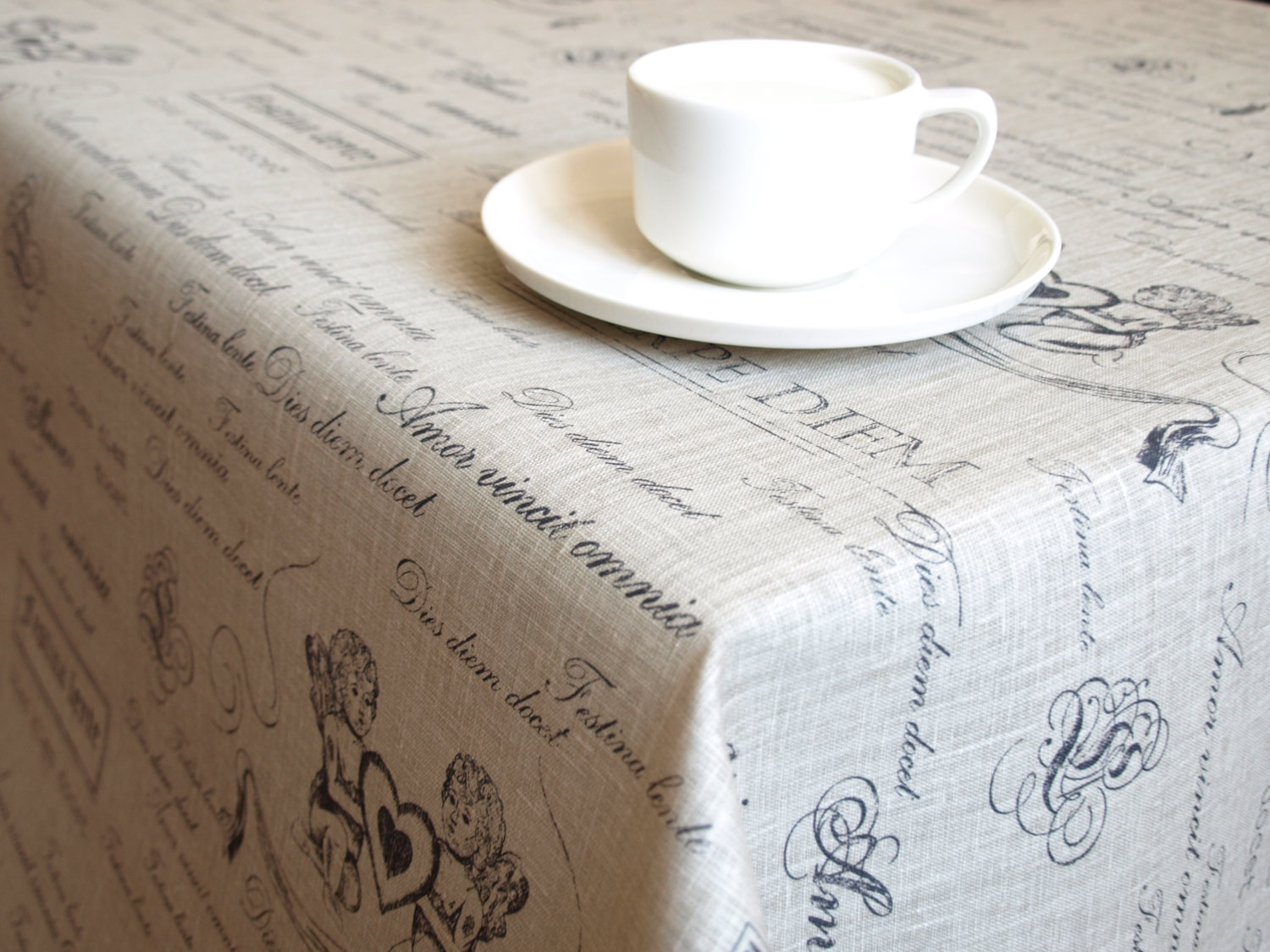 Material is a natural linen (has a light moisture resistant cover for easiest care)