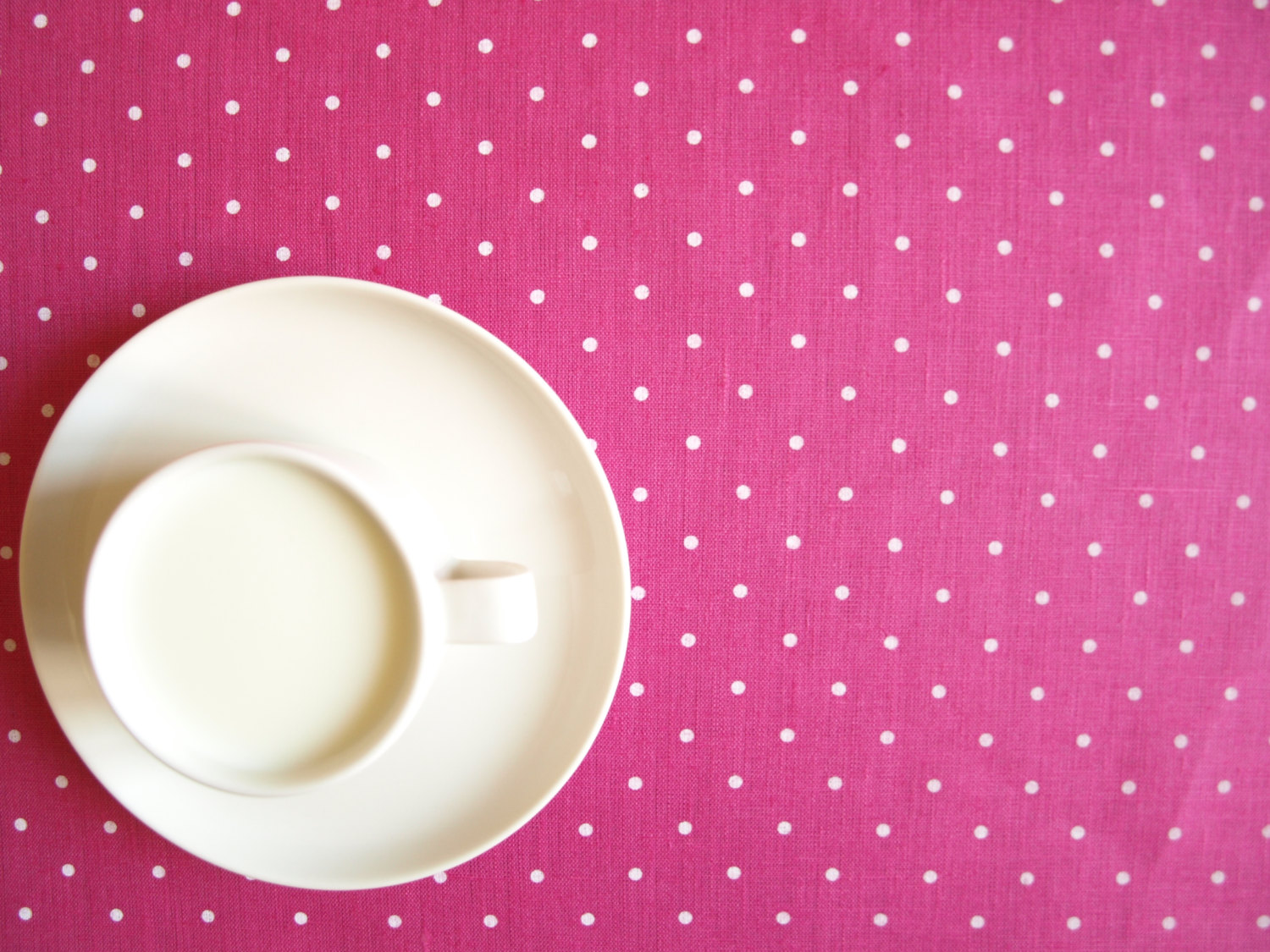 Linen tablecloth hot pink white polka dots Eco Friendly 37″x37″or order your size, table runner napkins pillow available,eco GIFT