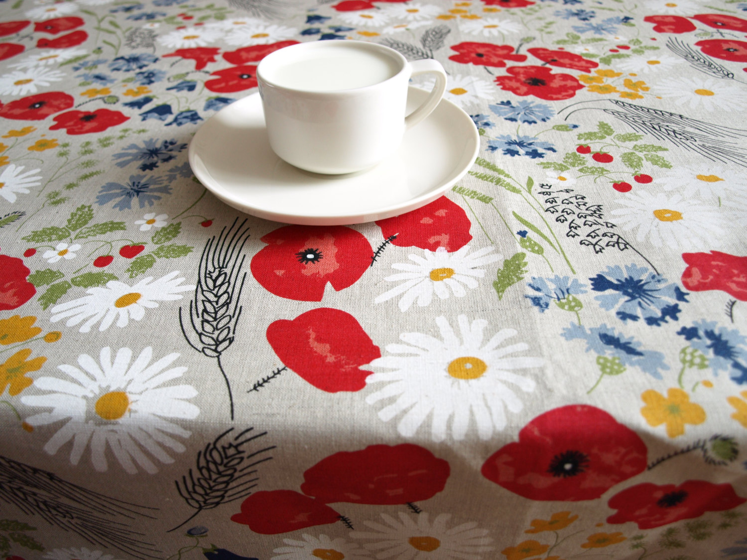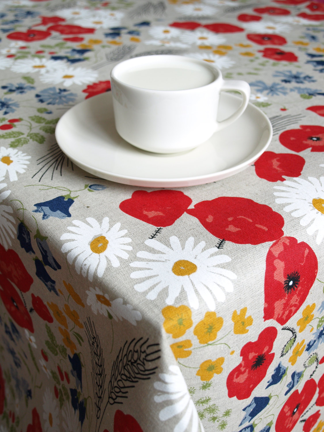 Linen Wedding tablecloth natural linen poppy meadow red white flowers Eco Friendly 56″x56″ or made to order your size, great GIFT