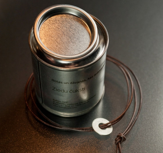 Packaging: jewel placed in brown linen bag and metal tan. Can sizes d:56 mm and h:61mm.