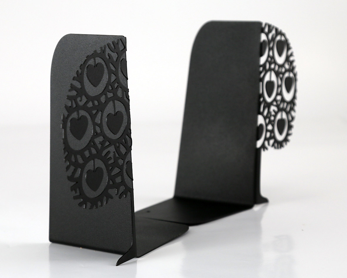 Love and Scandinavian inspired design. Magnificent combination. Powder coated velvety black laser cut metal bookends.