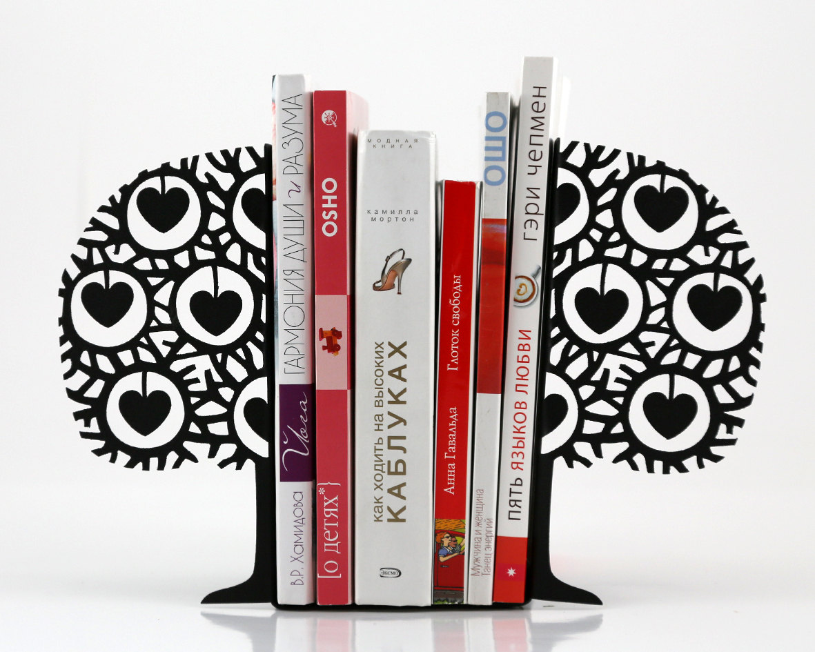 Minimalistic bookends – Danish heart tree- FREE SHIPPING Scandinavia inspired decor (black) great housewarming present