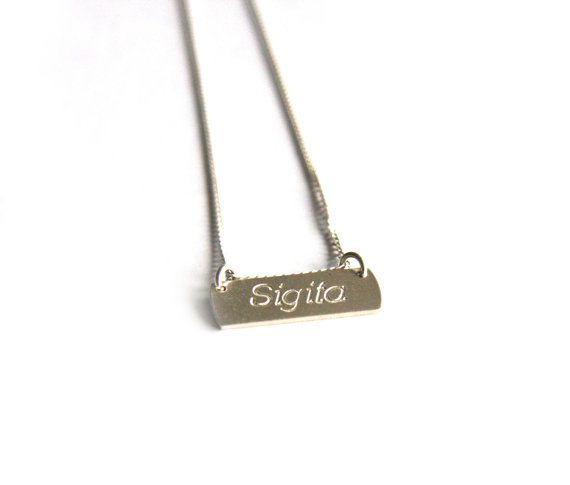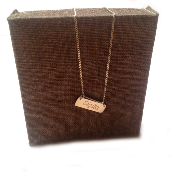 Name Pendant size: length 2cm, height 0,7cm, thickness 0,07 cm