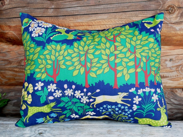 Pillow cover navy blue with with fairy tale forest Scandinavian Design Floor Cushions Accent Pillows