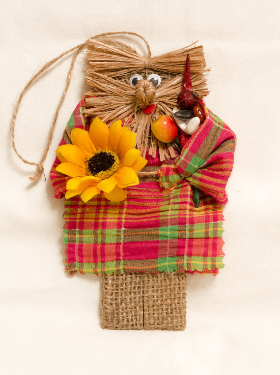 Red And Green Domovoi With Sunflower Handmade Magnet