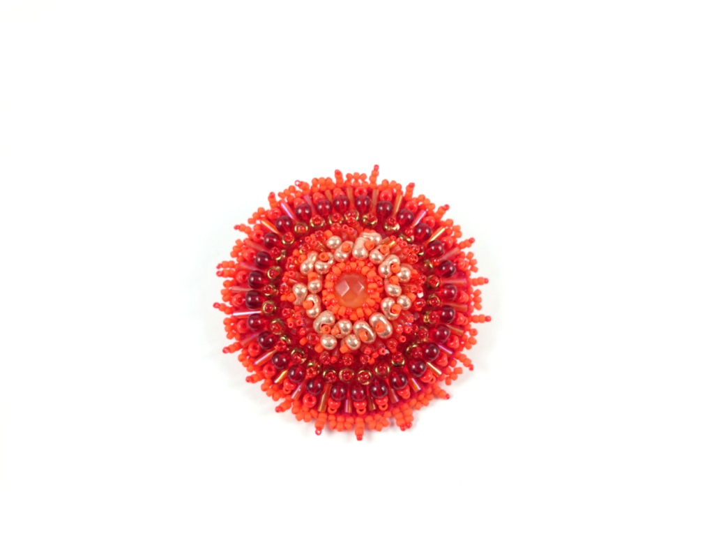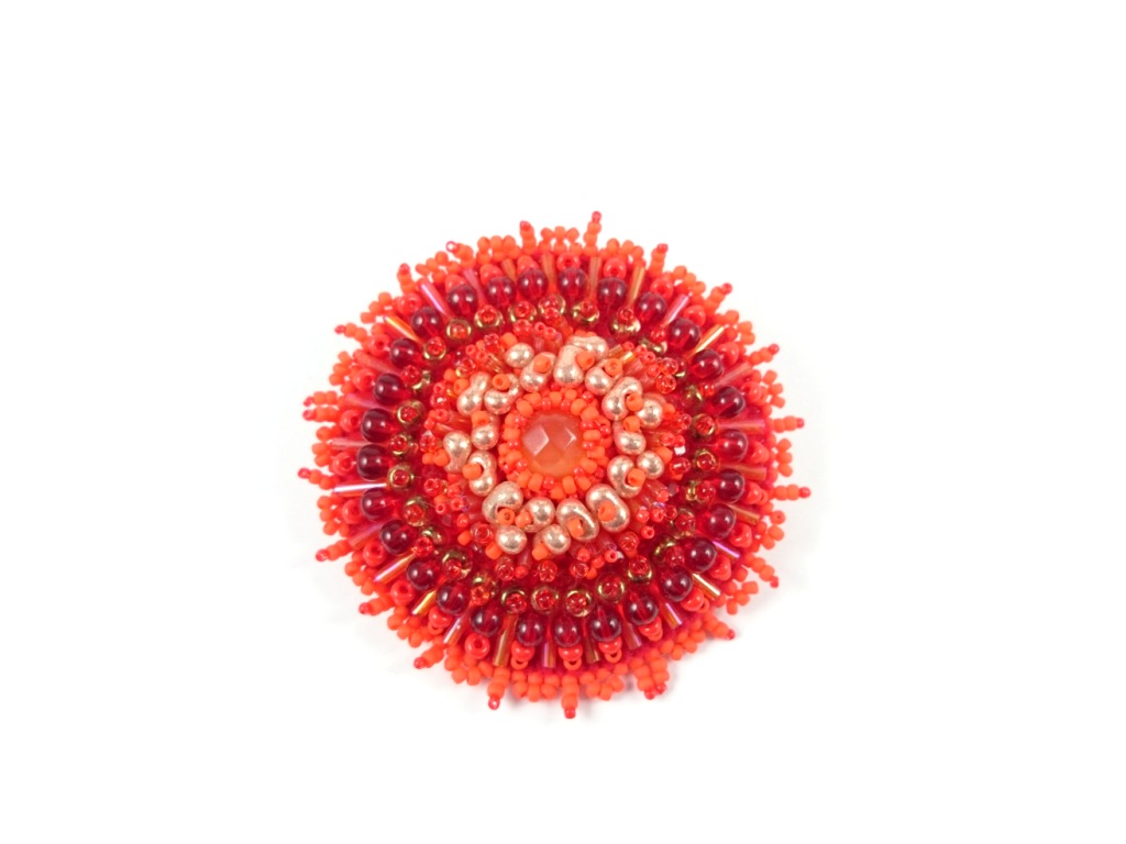 Be the first to review “Red Bead Embroidered Brooch, Jewelry in bead embroidery, Handmade Brooch, Red cat eye pin”