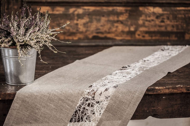 Rustic Designed table runner Burlap linen table cloth Gray linen table decor, housewares