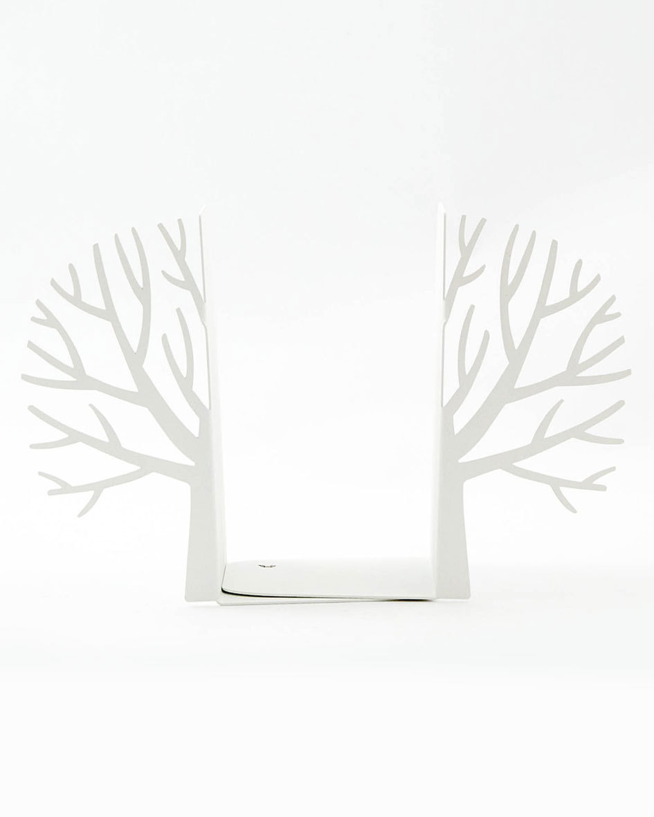 We made these recalling winter scenery of Scandinavia. Snowy landscapes with naked trees. Contemporary pure shapes to hold several of your favorite books.
