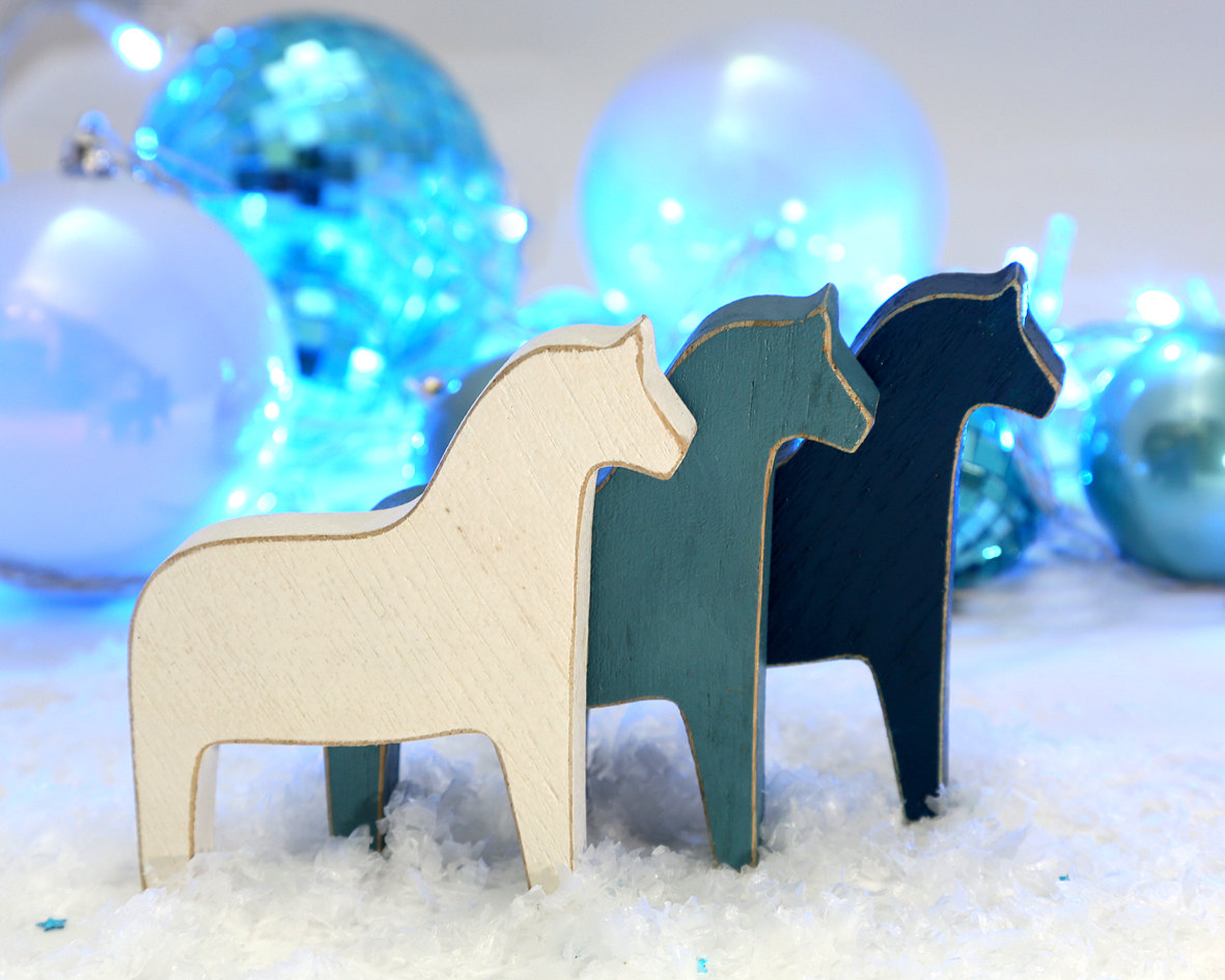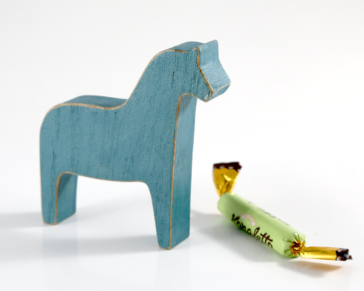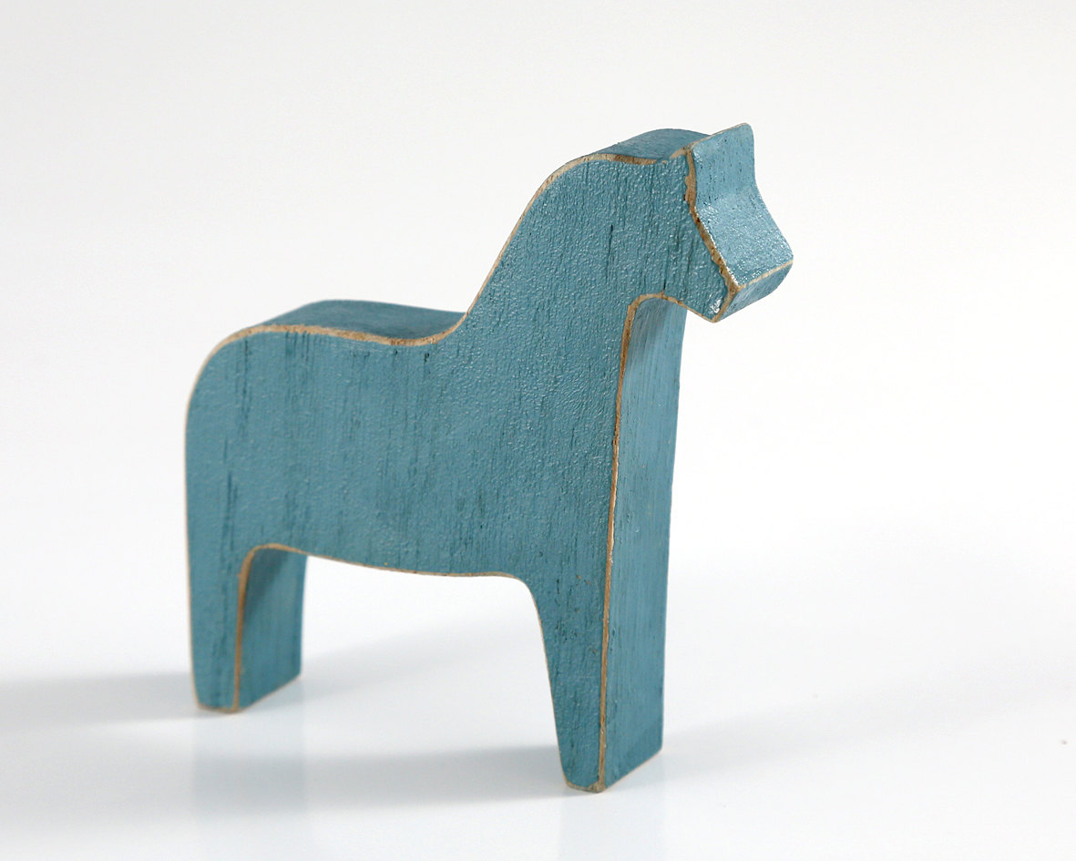 One rustic blue horse with faux traces of wear and tear.