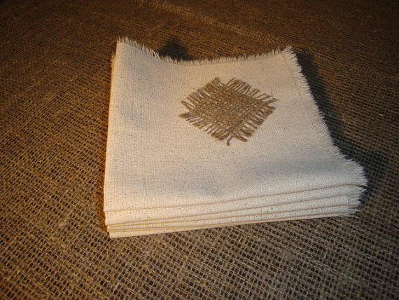 Set 6 napkins white linen with a decorative patch. Original napkins. ECO Napkins, Dinner napkins. Table Linen.