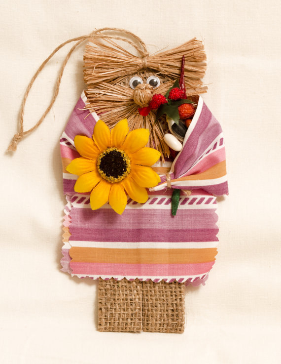 Striped Pink Domovoi With Sunflower Handmade Magnet