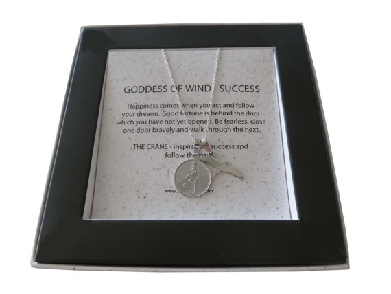 Success necklace – Winds Goddess with crane pendant- Sterling silver 925