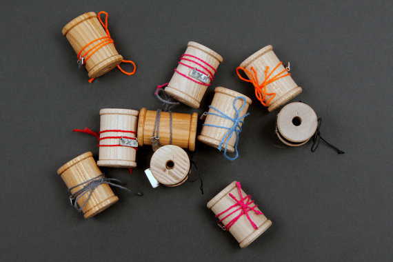 Wooden spool: height 5,5 cm, diameter 3,7 cm