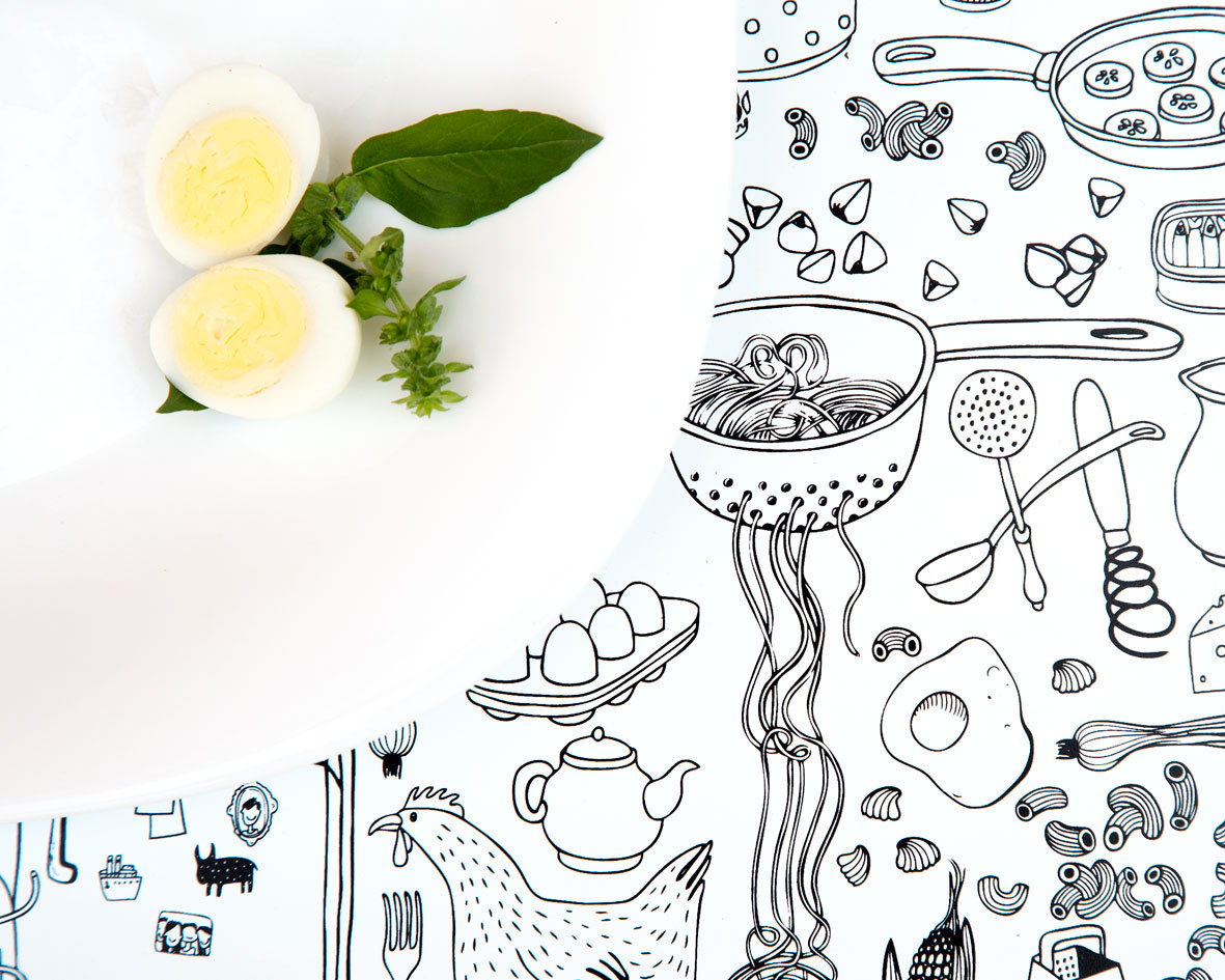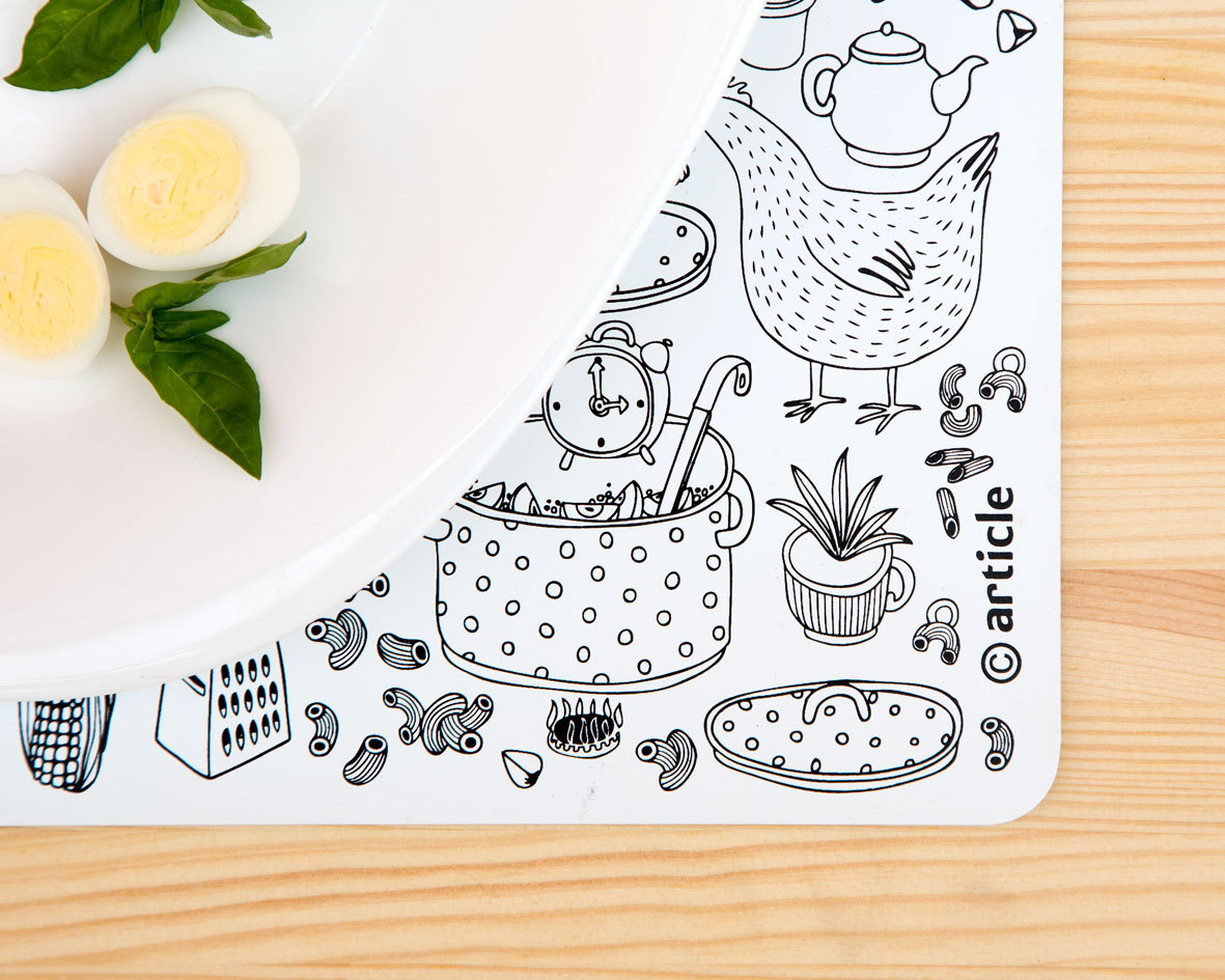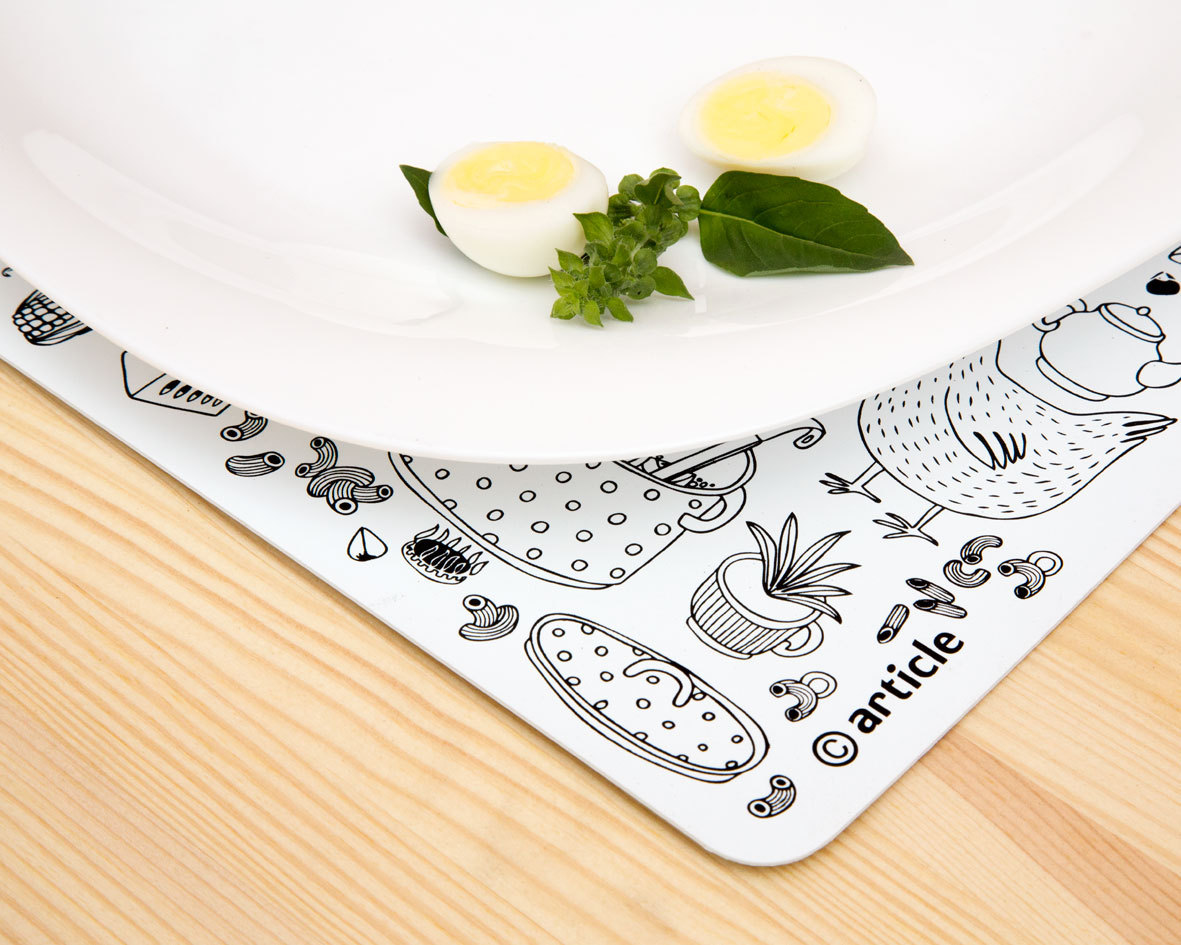 Practical and stylish black and white mat for your table. Screen printing on plastic. Hand wash only with dish liquid and soft cloth.