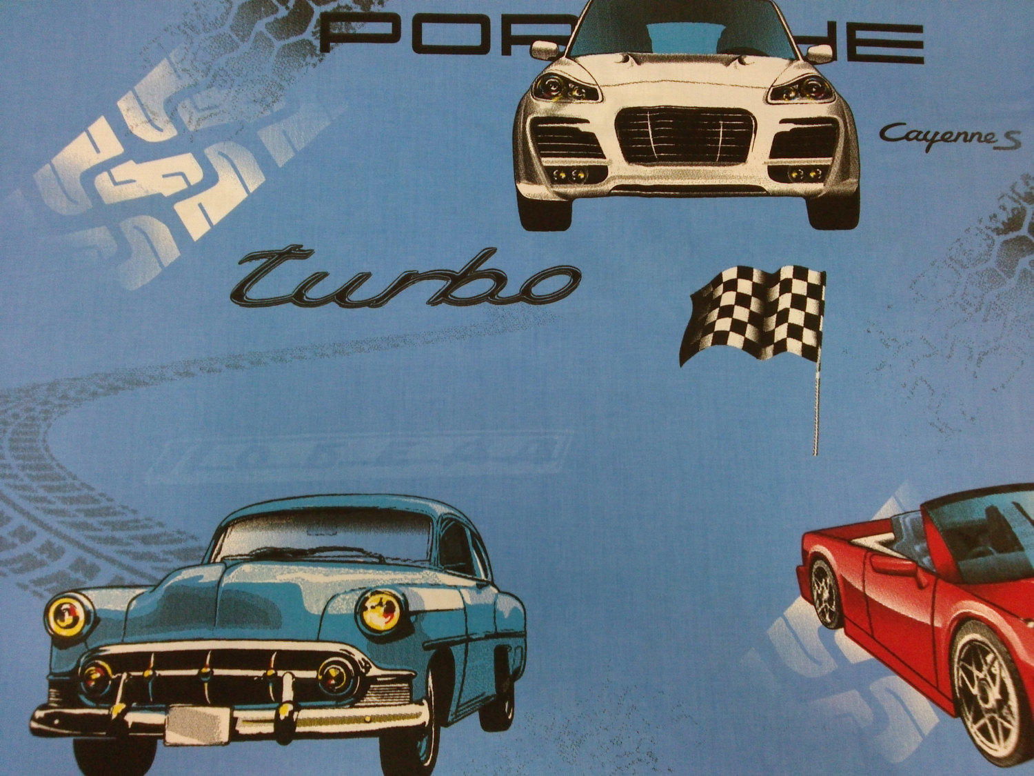 Tablecloth Blue red yellow racing cars Kids Room Decor Scandinavian Design ,also napkins , runners , curtains available, great GIFT