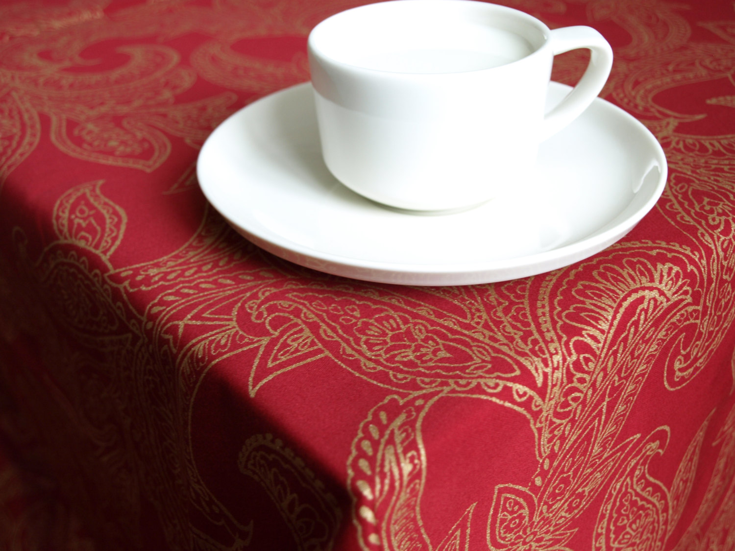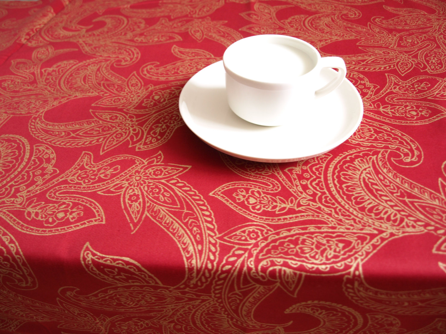 Tablecloth deep red burgundy gold flowers Floral Scandinavian Design , runner , napkins , curtains , pillows available, great GIFT