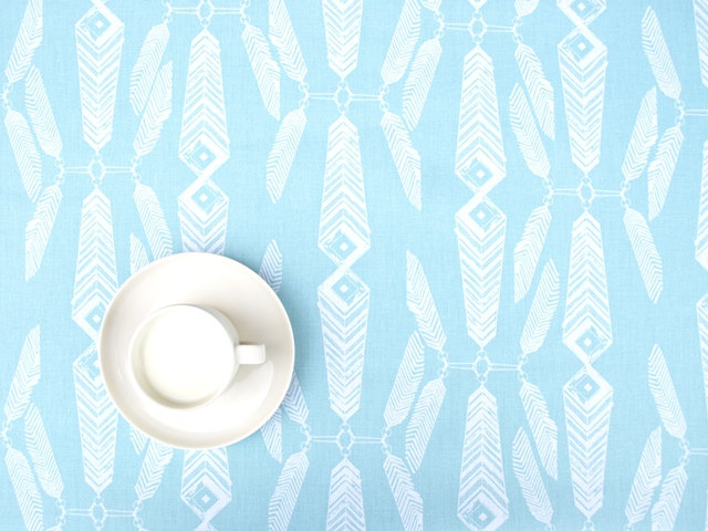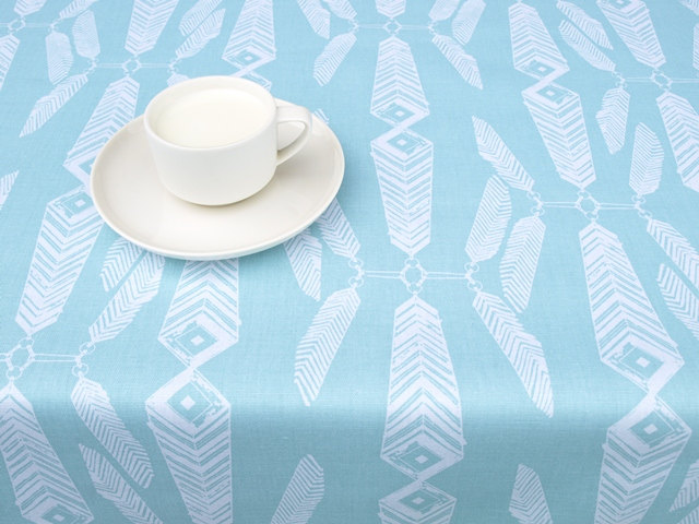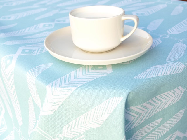 Tablecloth mint green white Ethnic motive Indians Feathers Abstract table cloth, runner , napkins , pillow , curtain available, great GIFT